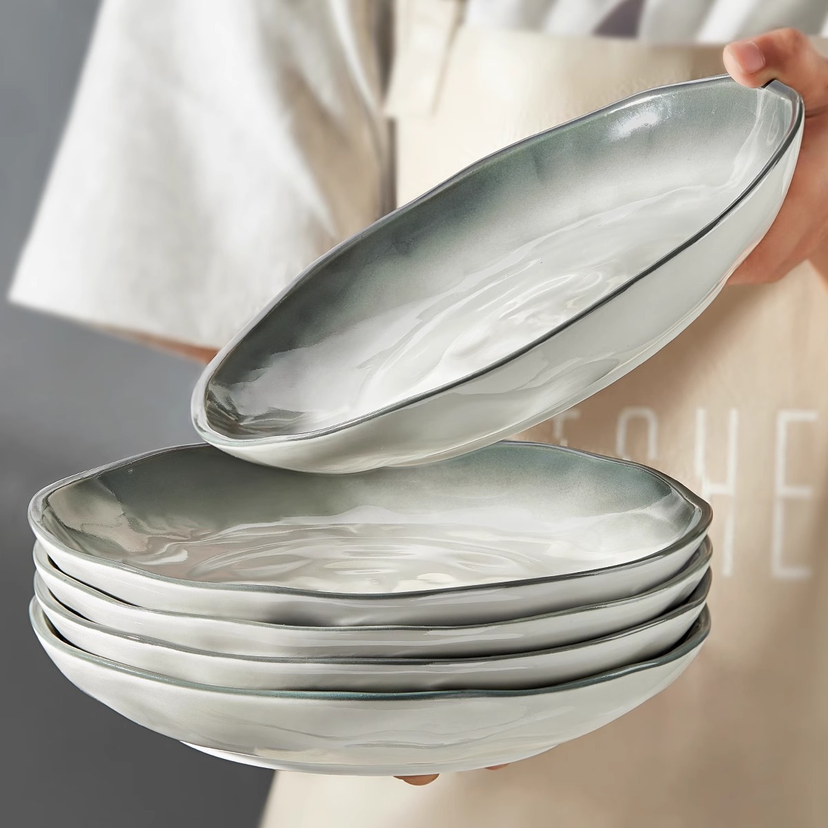 그라디언트 느낌 판 접시 가정용 2024 새로운 스타일 그릇 접시 세라믹 식기 높은 색상 가치 깊은 접시 수프 요리