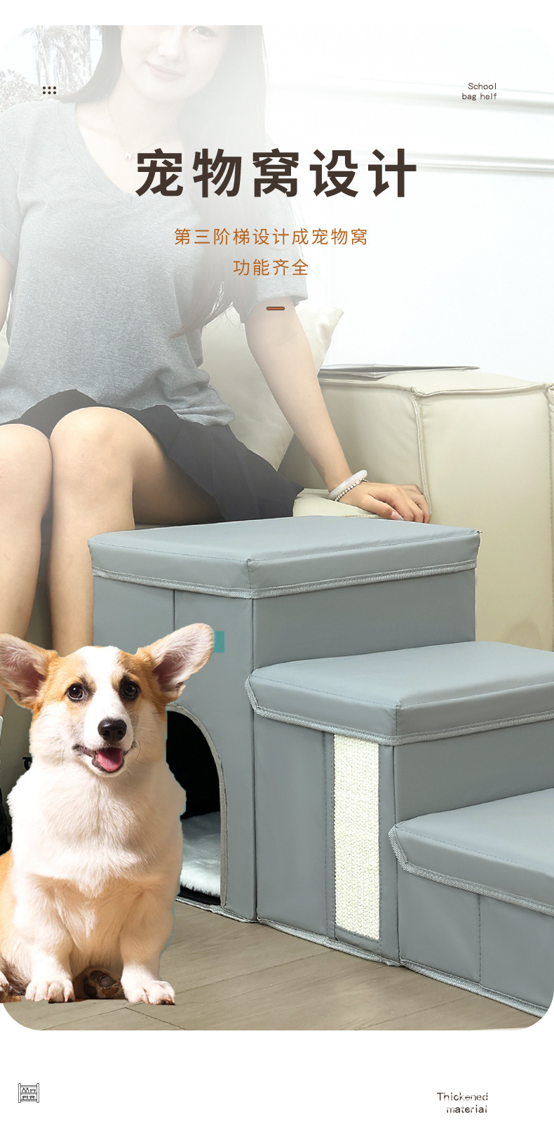 고양이와 강아지를 위한 접이식 방수 애완동물 계단 쿠션, 소형 애완동물용 3단 사다리, 계단 의자
