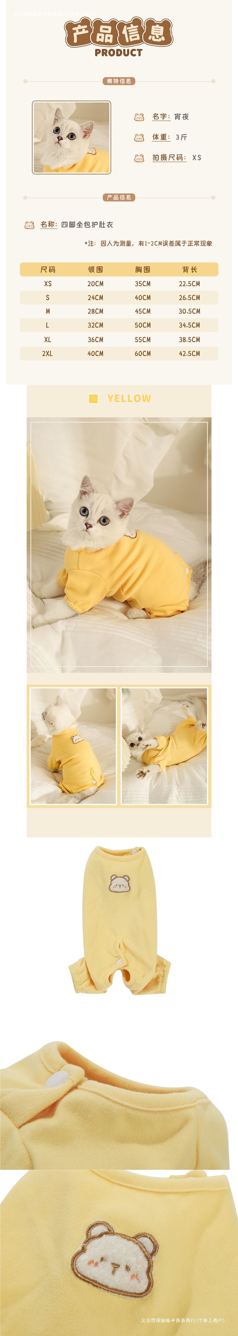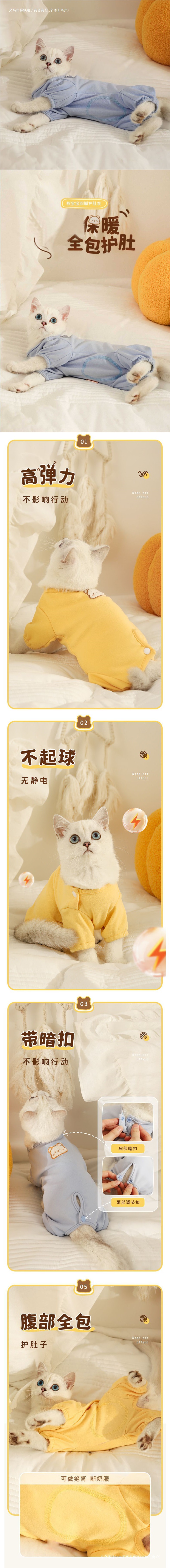 고양이 옷 봄과 가을 고탄성 새끼 고양이 Ragdoll 고양이 탈모 방지 가을과 겨울 애완 동물 고양이 배꼽 보호 새끼 고양이 네발 옷스토어 가기
