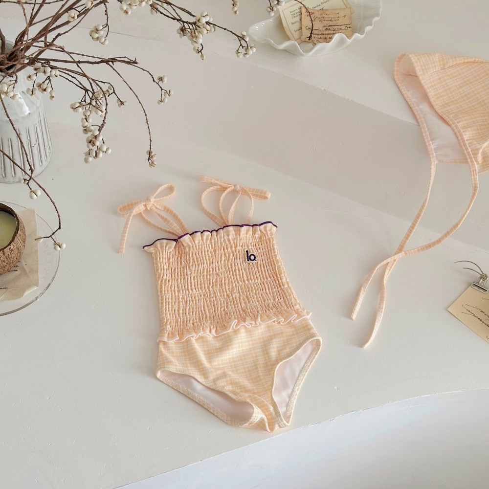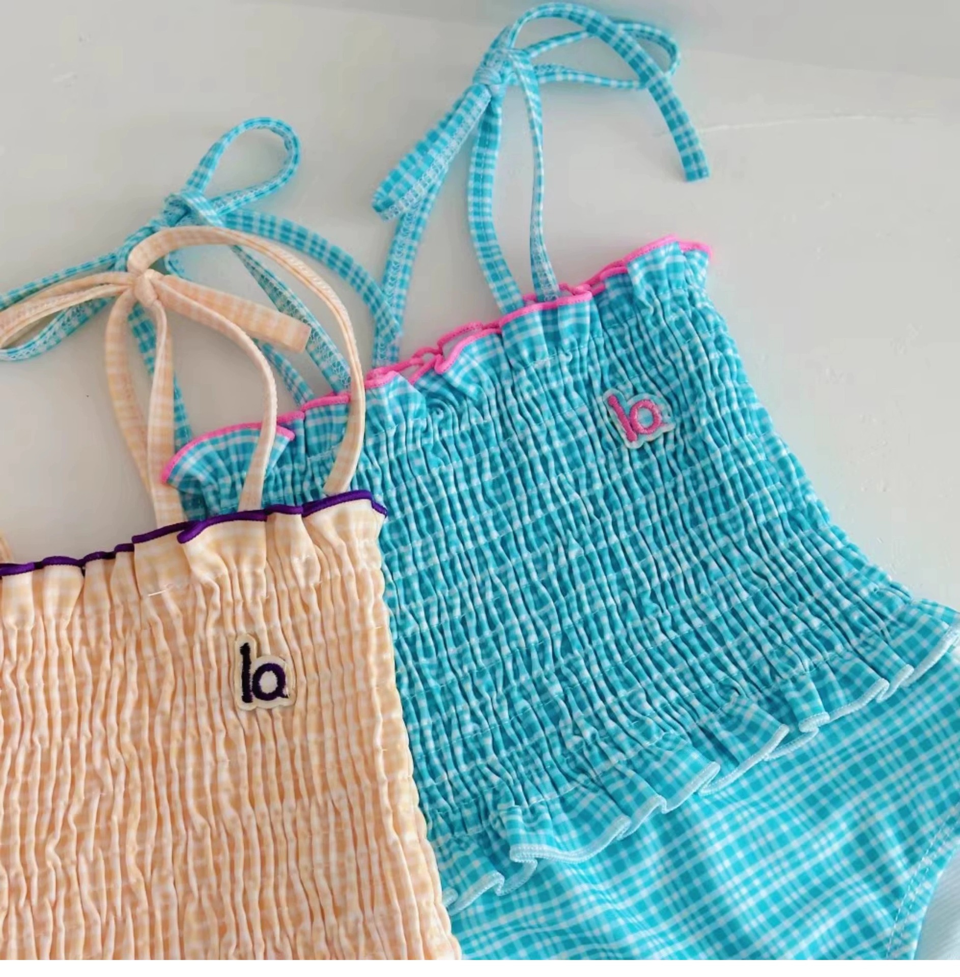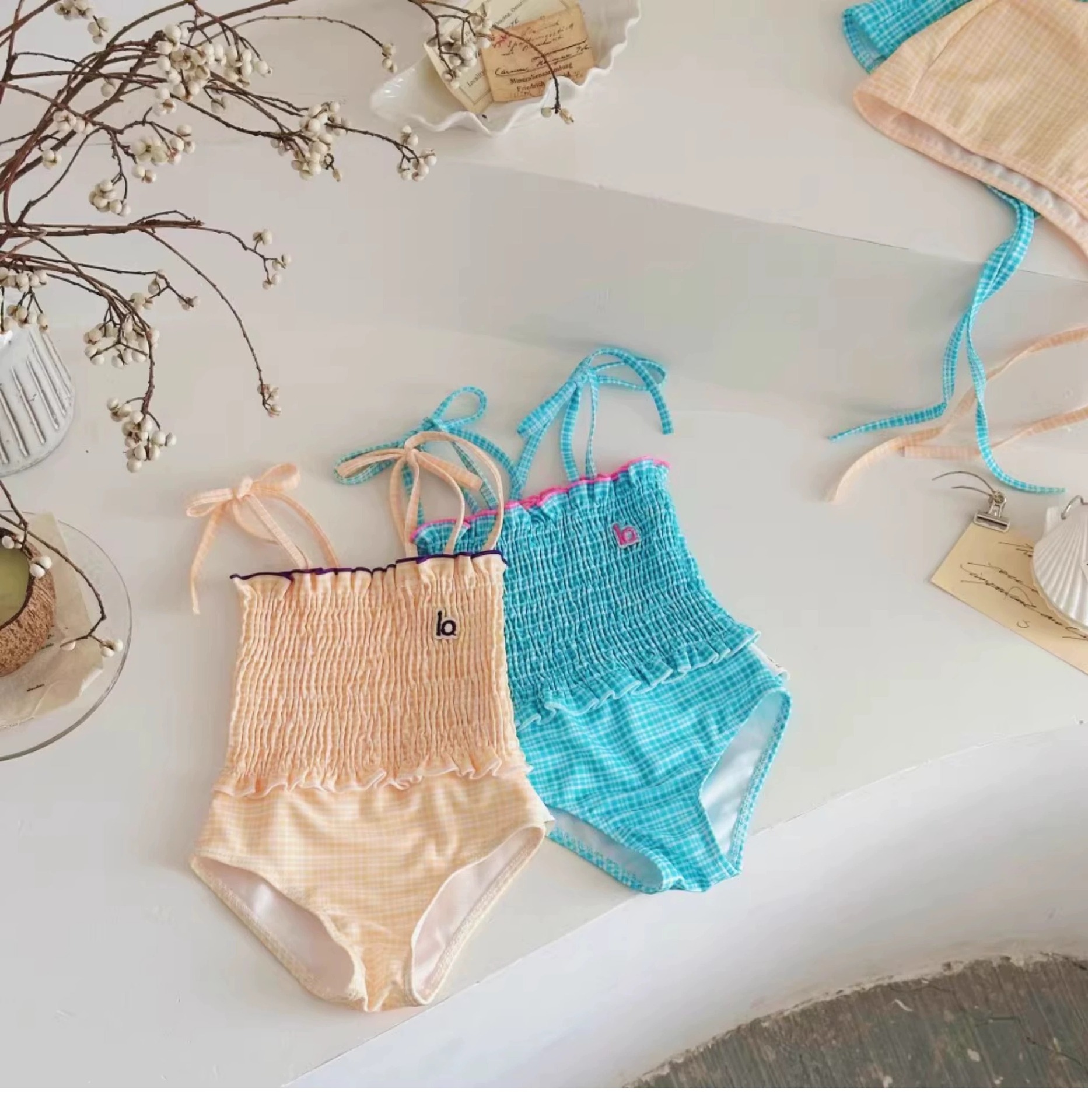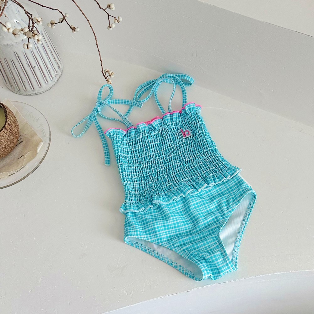 Ins 소녀 수영복 원피스 서스펜더 어린이 수영복 아기 작은 공주 귀여운 격자 무늬 휴가 수영복스토어 가기