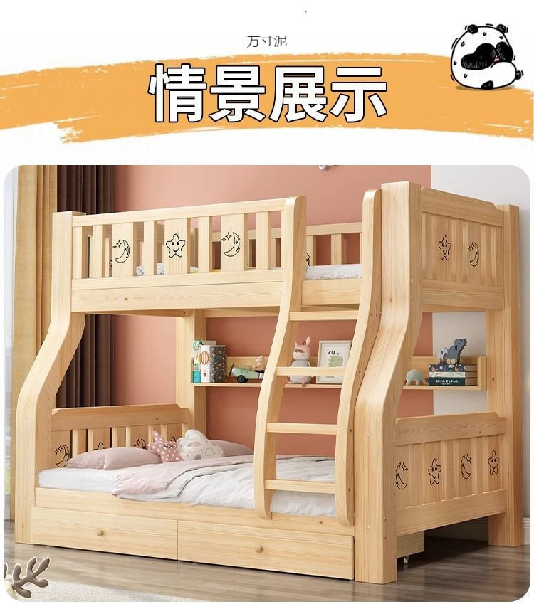 단단한 나무 엄마와 아이 침대 상하 침대 높고 낮은 벙크 침대 작은 아파트 상하 침대 벙크 조합 어린이 침대 2 층 유아용 침대 공장