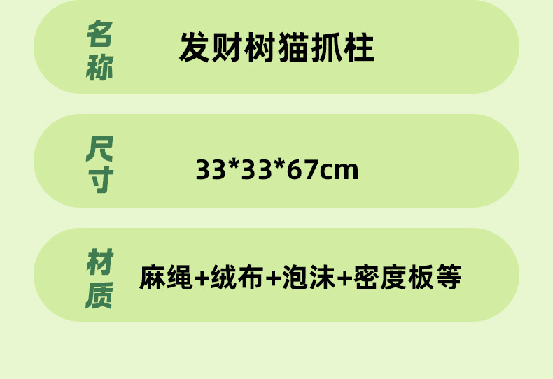 发财树猫抓柱(麻绳款)独立纸盒打包:35*34.2*19cm,打包后重量:1.707kg
