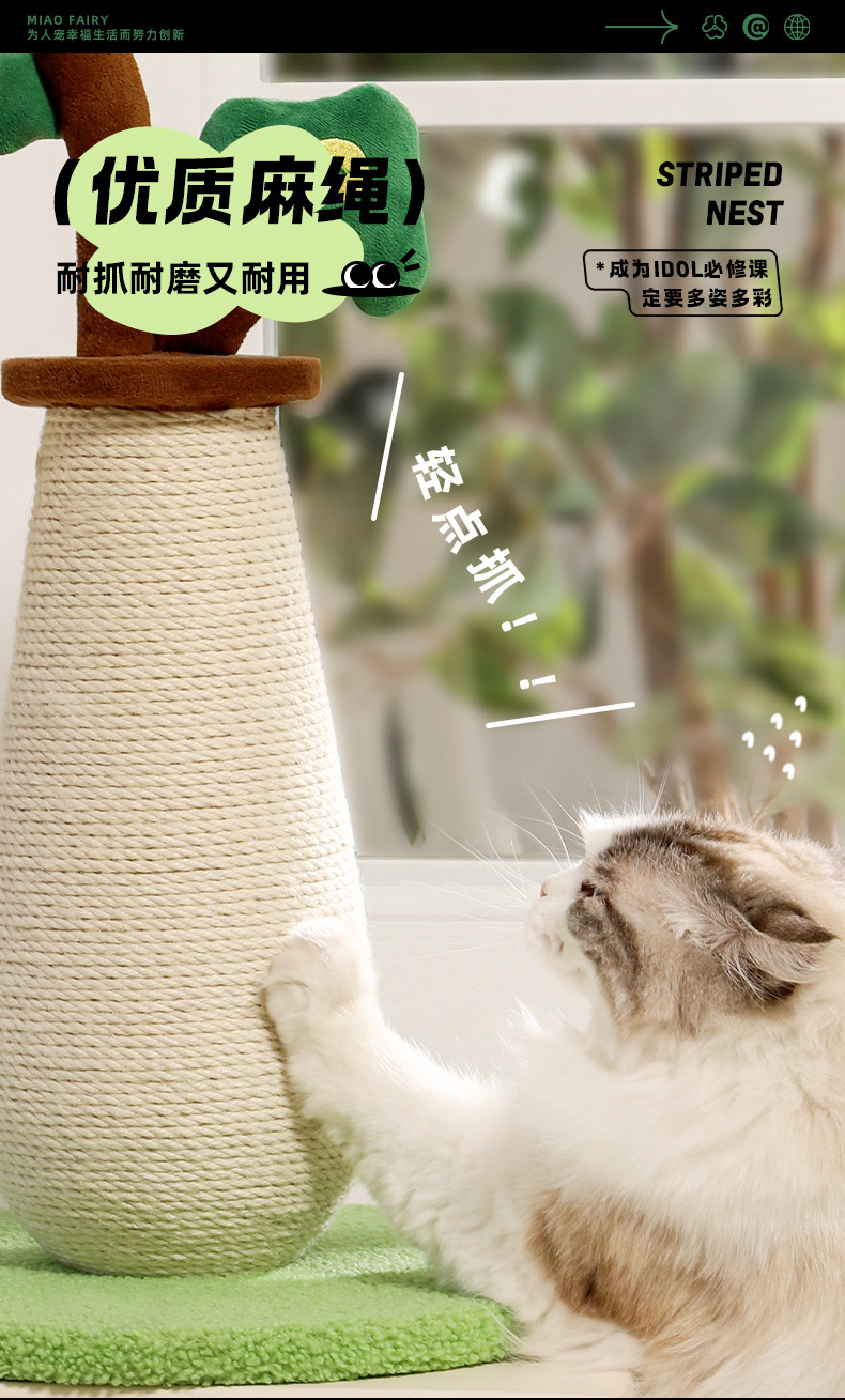 마끈형 고양이 스크래쳐, 고양이 클라이밍 프레임, 내마모성, 부스러기 없는, 스탠딩형 행운나무, 고양이 발톱갈이 장난감, 부스러기 없는 고양이 놀이용 장난감