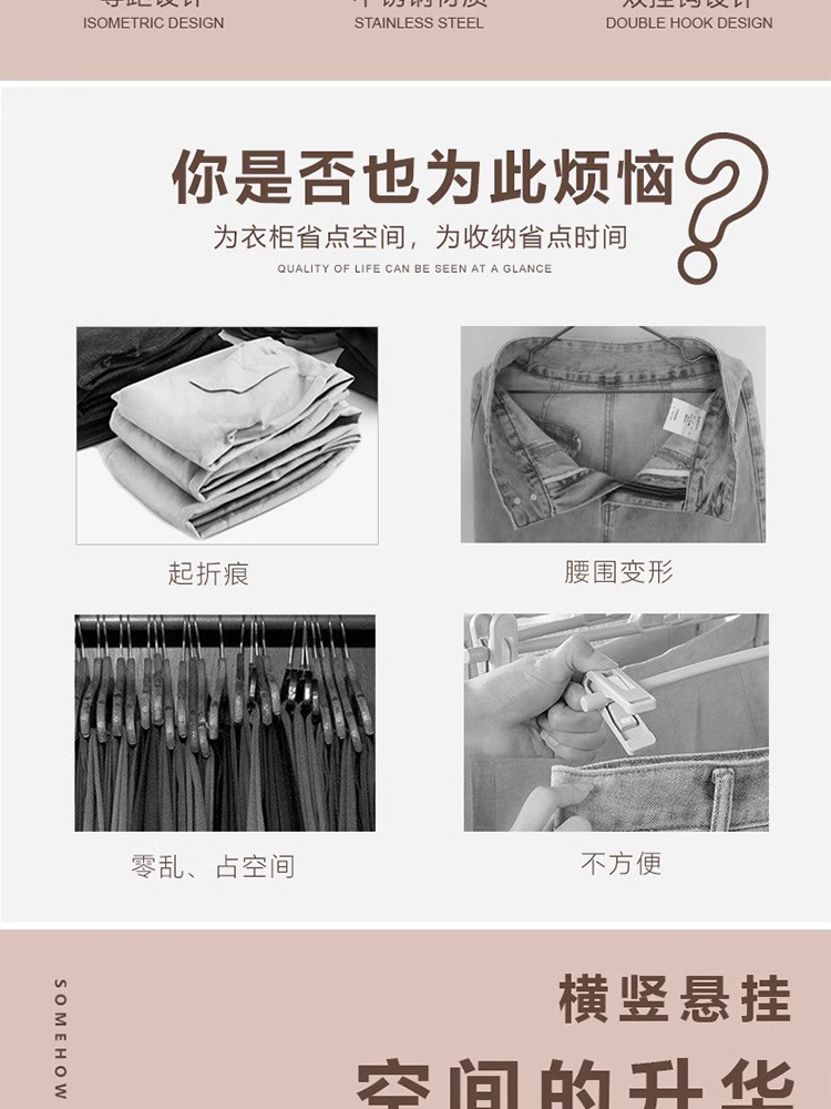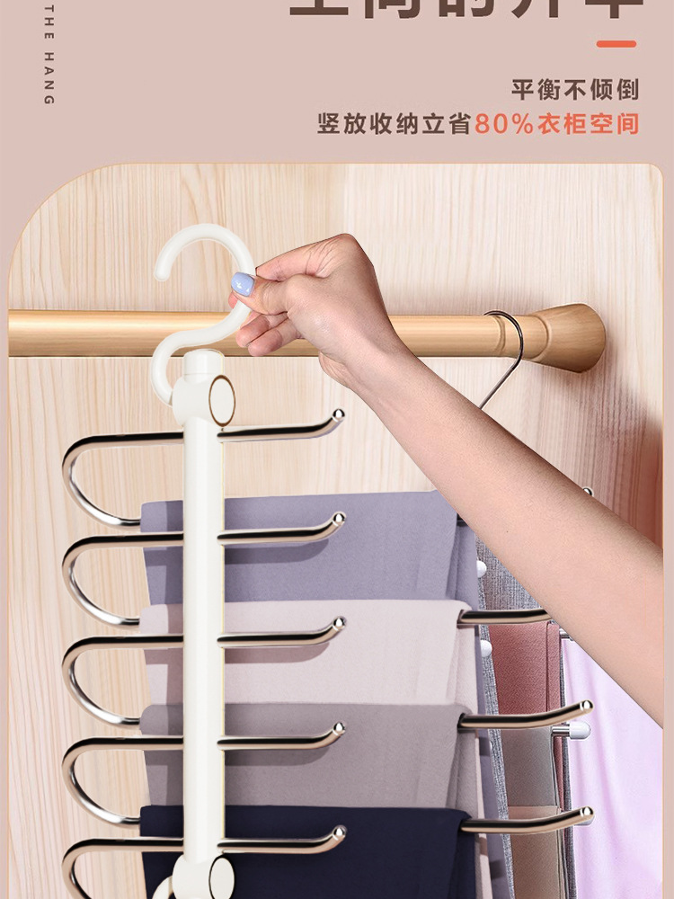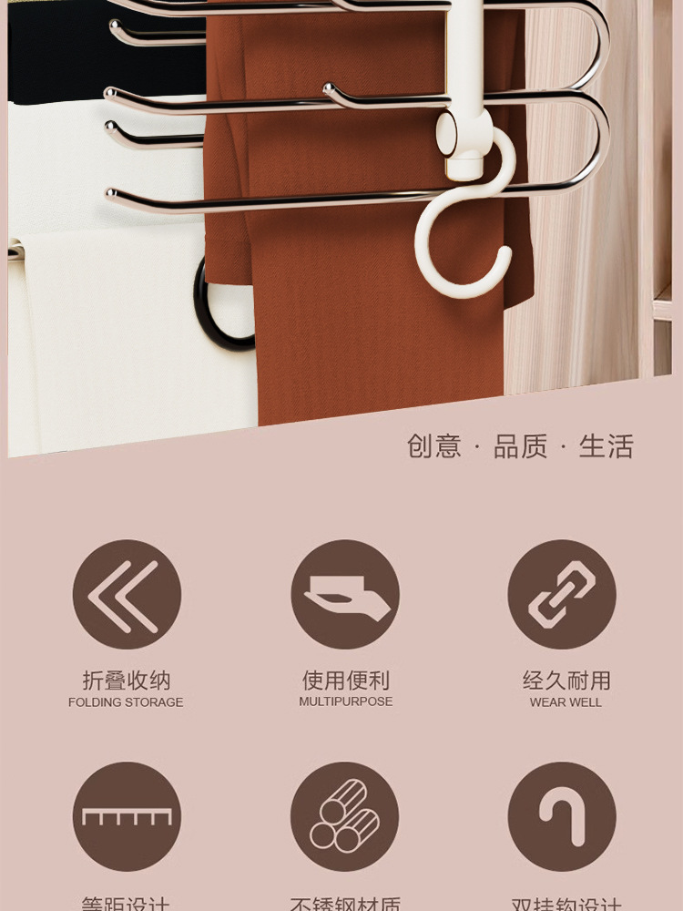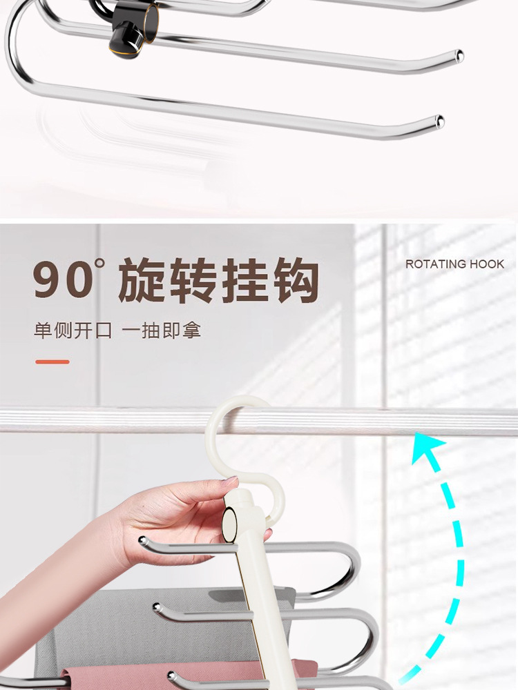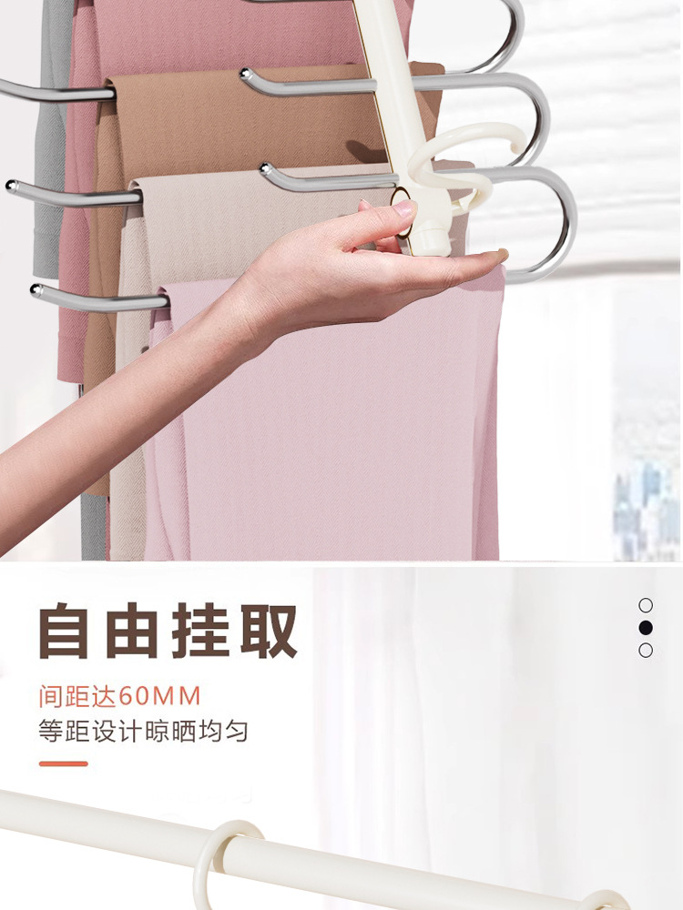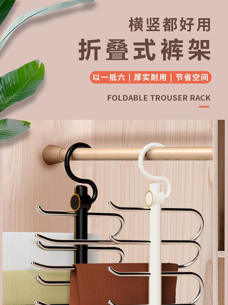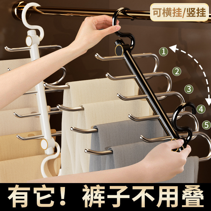 접이식 바지 랙, 가벼운 고급 스테인레스 스틸 가정용 다층 의류 보관 랙, 마법의 흔적없는 옷장 옷걸이스토어 가기