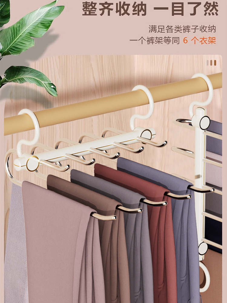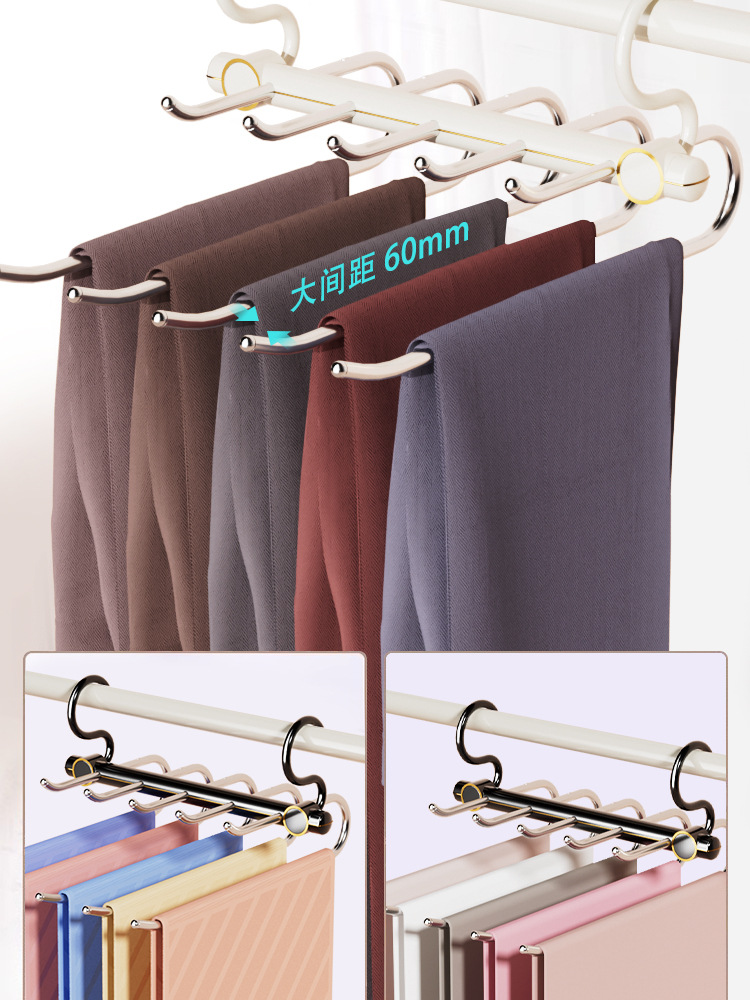 접이식 바지 랙, 가벼운 고급 스테인레스 스틸 가정용 다층 의류 보관 랙, 마법의 흔적없는 옷장 옷걸이