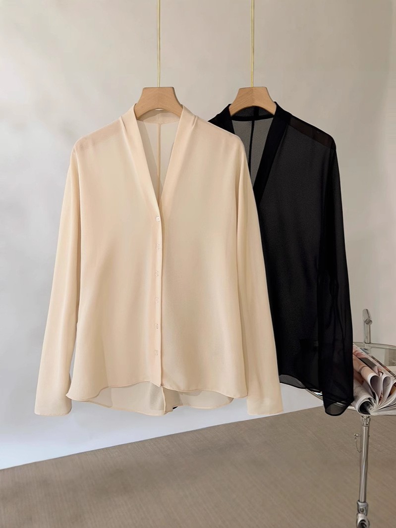 엔디 솔리드 컬러 브이넥 심플 자외선 차단 셔츠 여성 여름 기질 얇은 긴팔 다용도 에어컨 가디건 탑스토어 가기