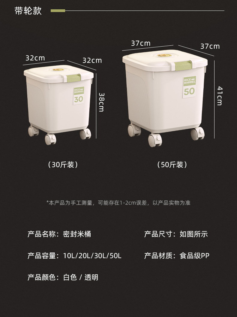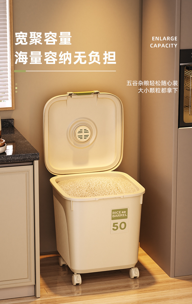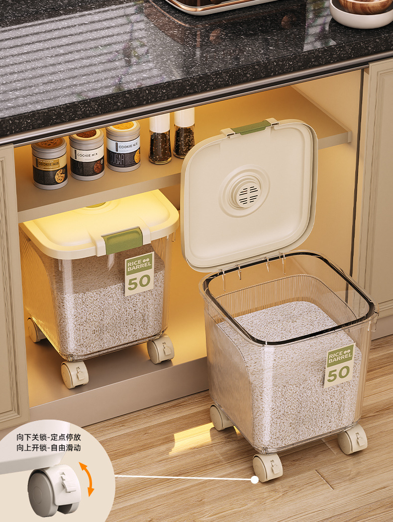 쌀통 가정용 다기능 쌀통 방충 및 방습 20파운드 15kg 쌀 저장 용기 주방 곡물 국수 통 쌀 수납 상자스토어 가기