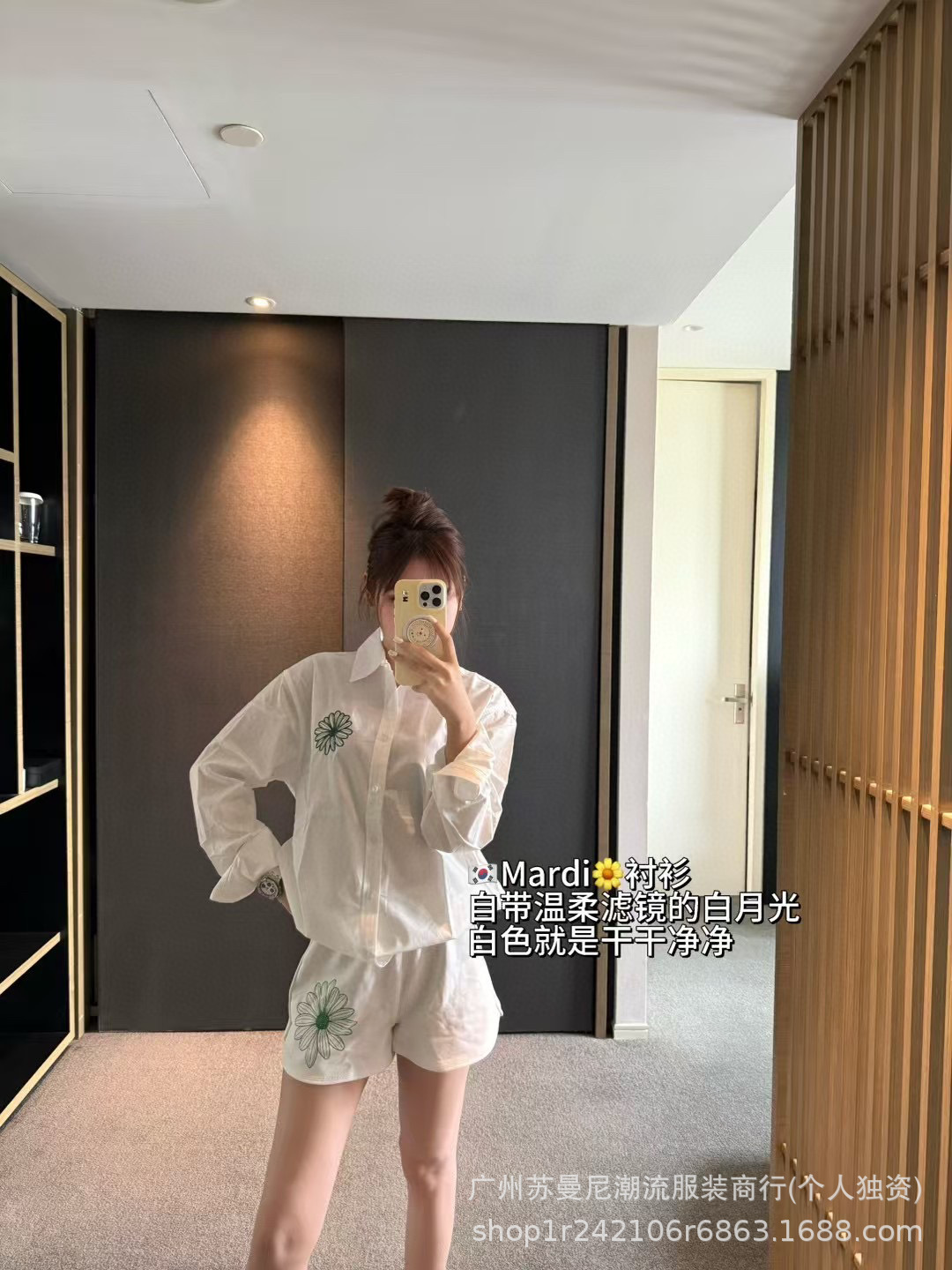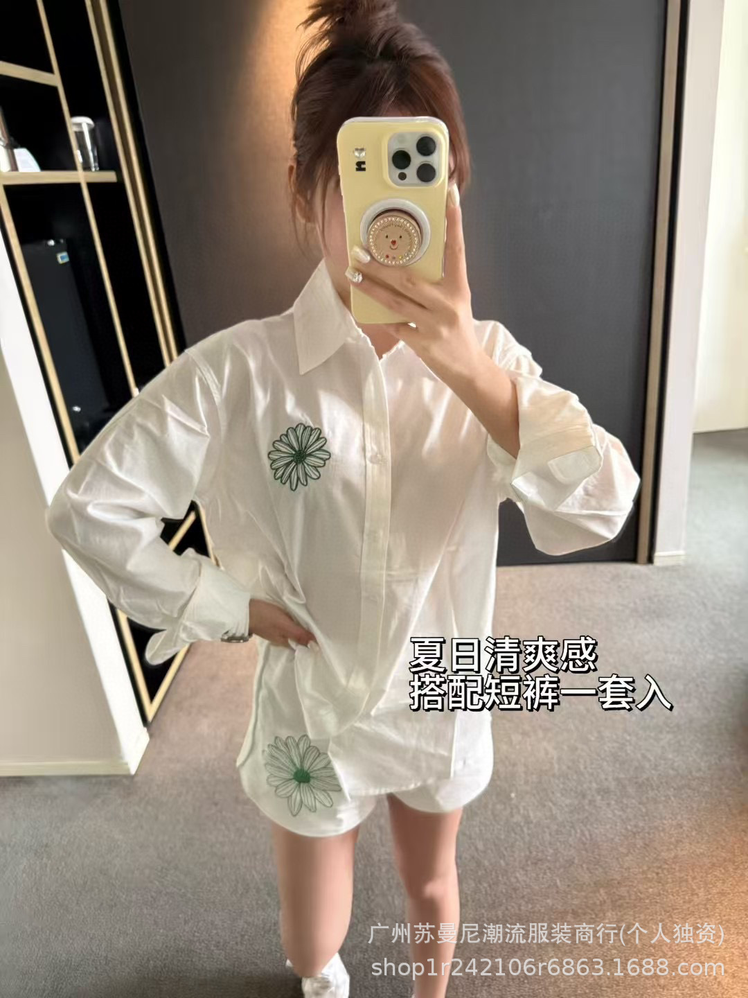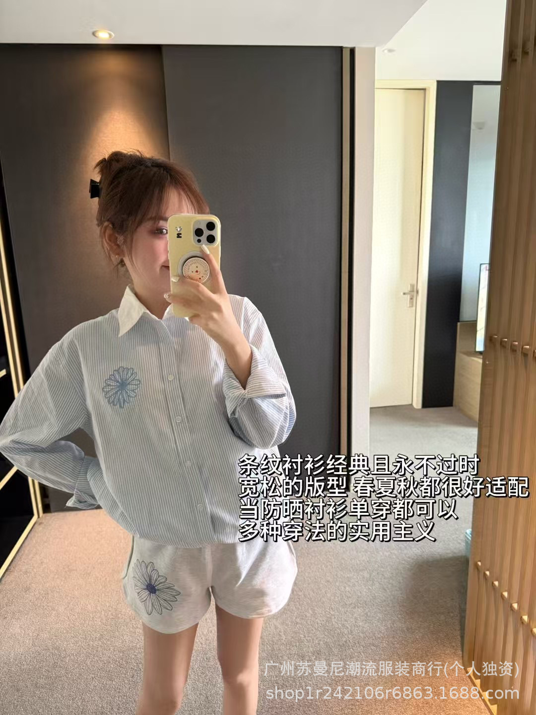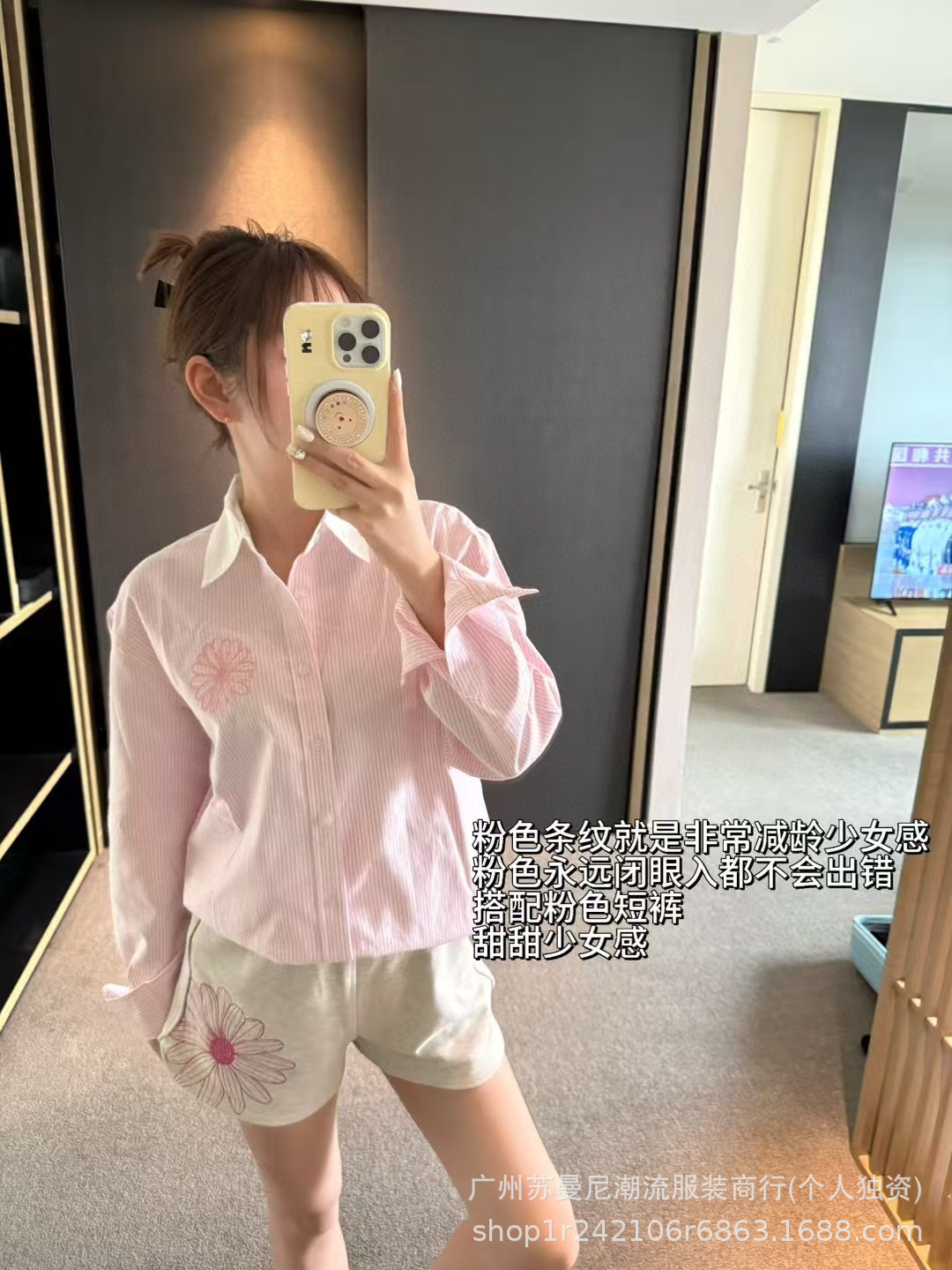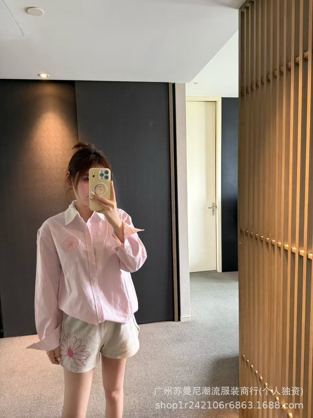 마디 셔츠 2025 새로운 스타일 데이지 자수 스트라이프 슬림 셔츠 다재다능한 기질 느슨한 여성 봄, 가을스토어 가기