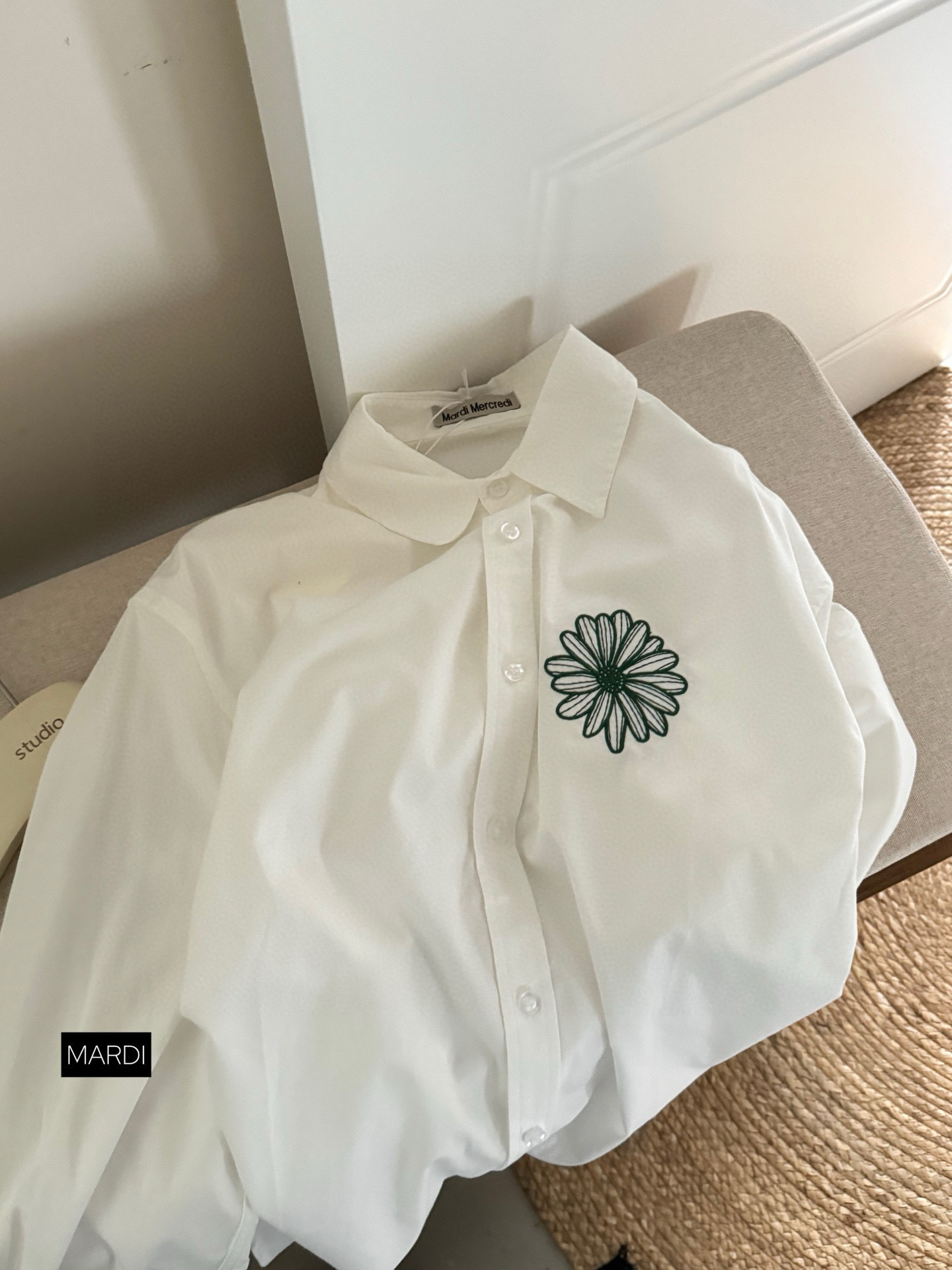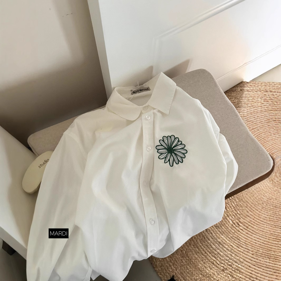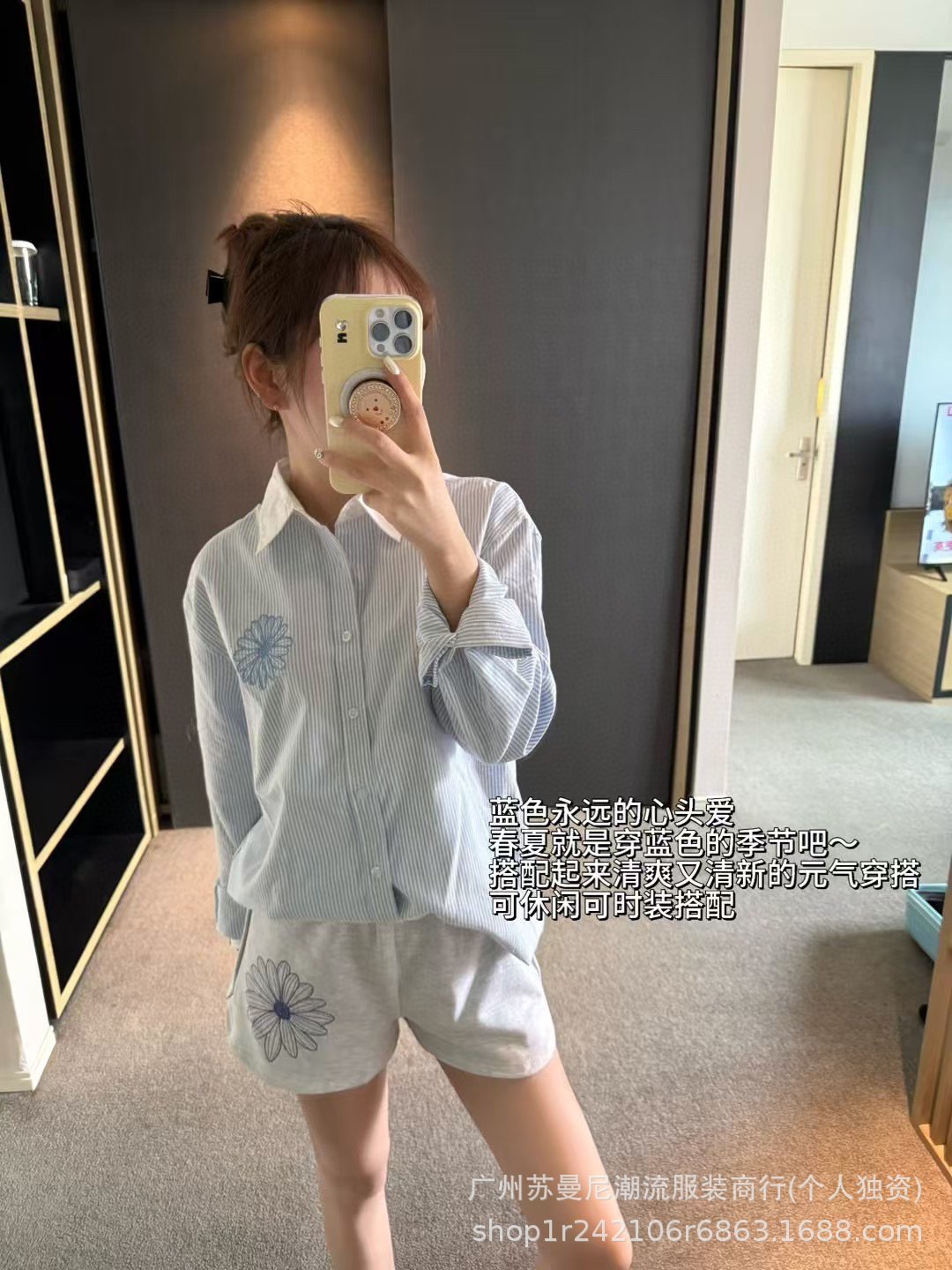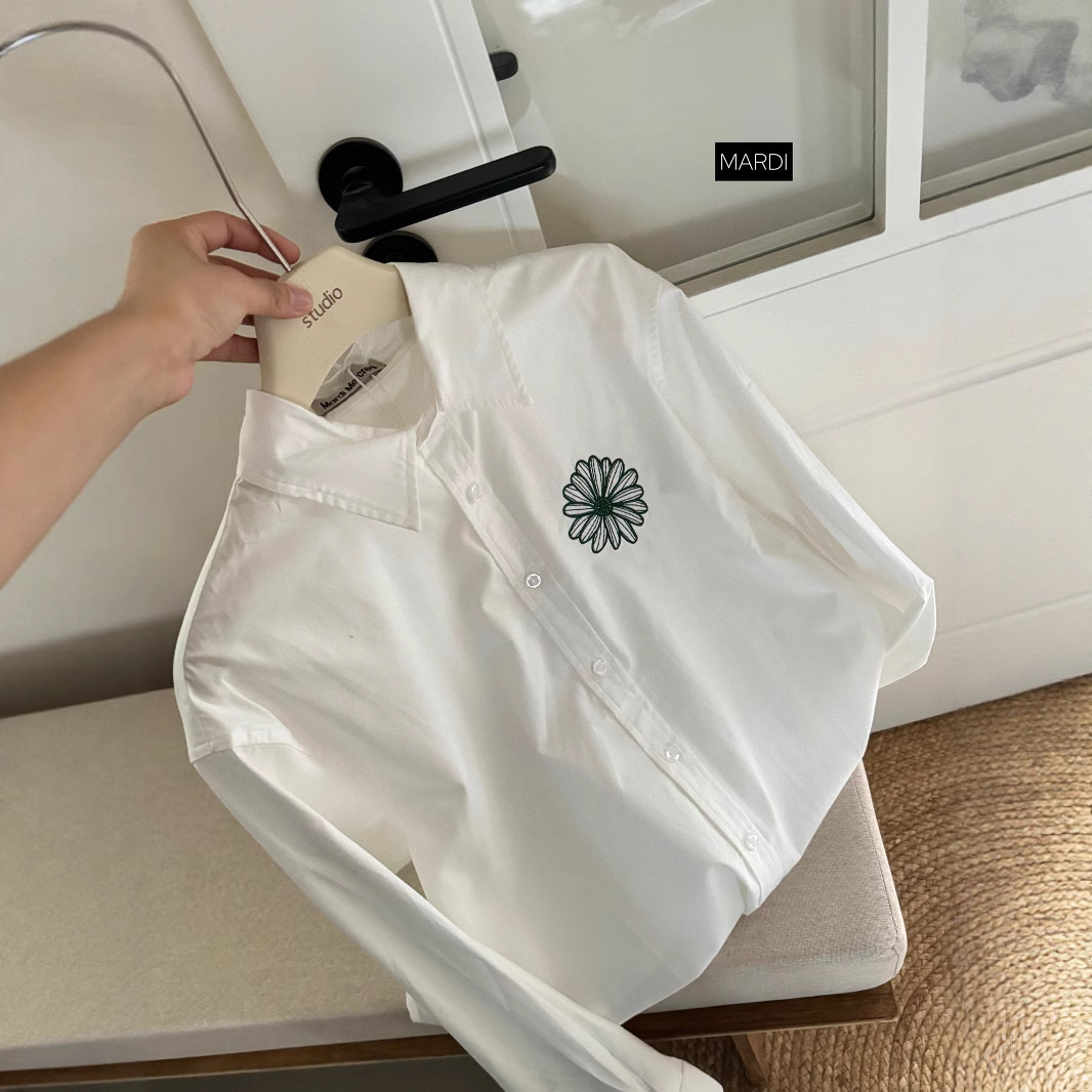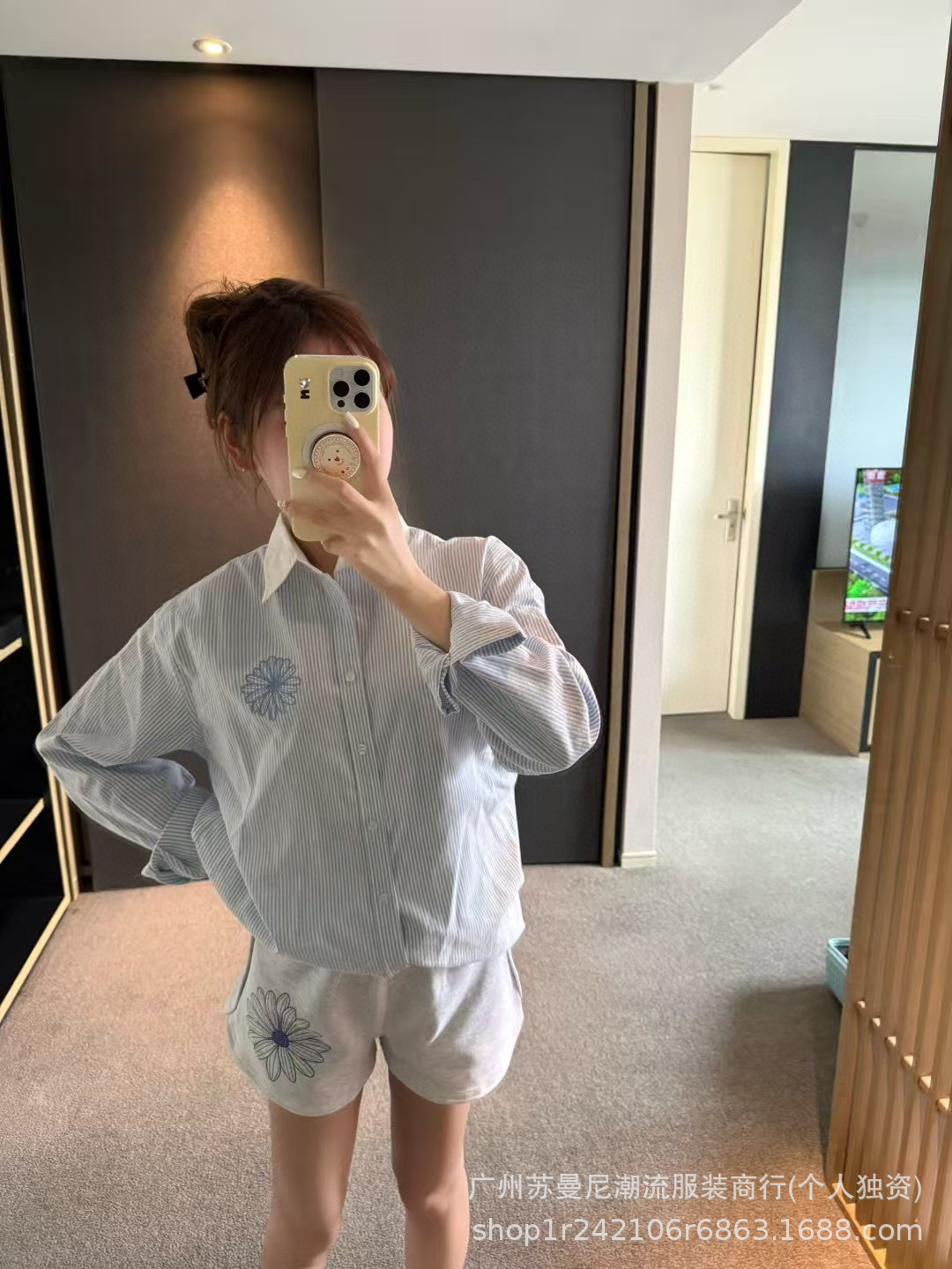 마디 셔츠 2025 새로운 스타일 데이지 자수 스트라이프 슬림 셔츠 다재다능한 기질 느슨한 여성 봄, 가을스토어 가기