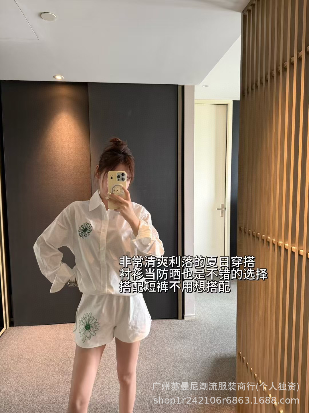 마디 셔츠 2025 새로운 스타일 데이지 자수 스트라이프 슬림 셔츠 다재다능한 기질 느슨한 여성 봄, 가을