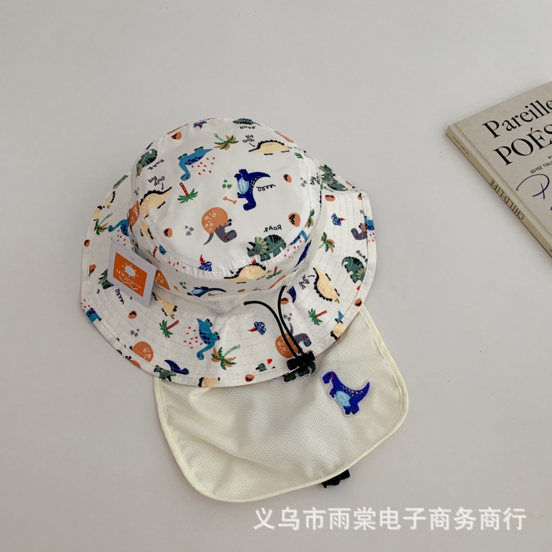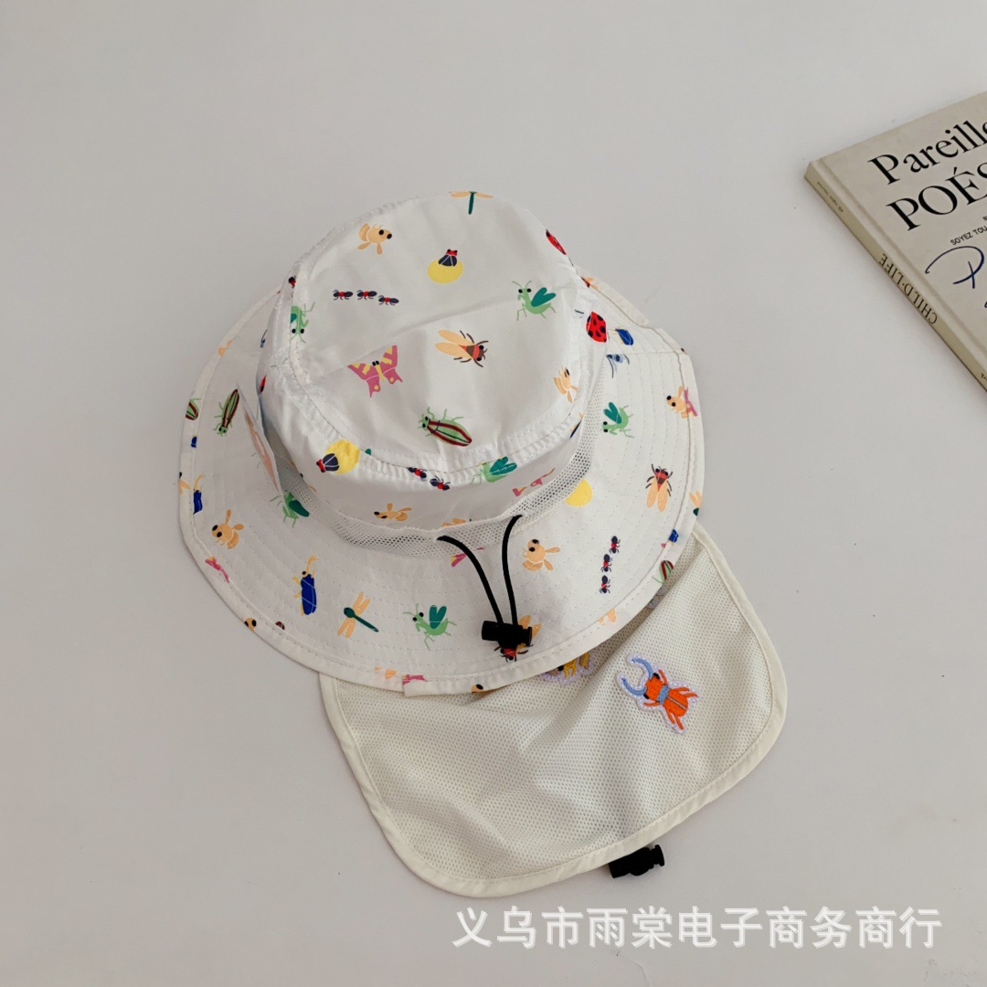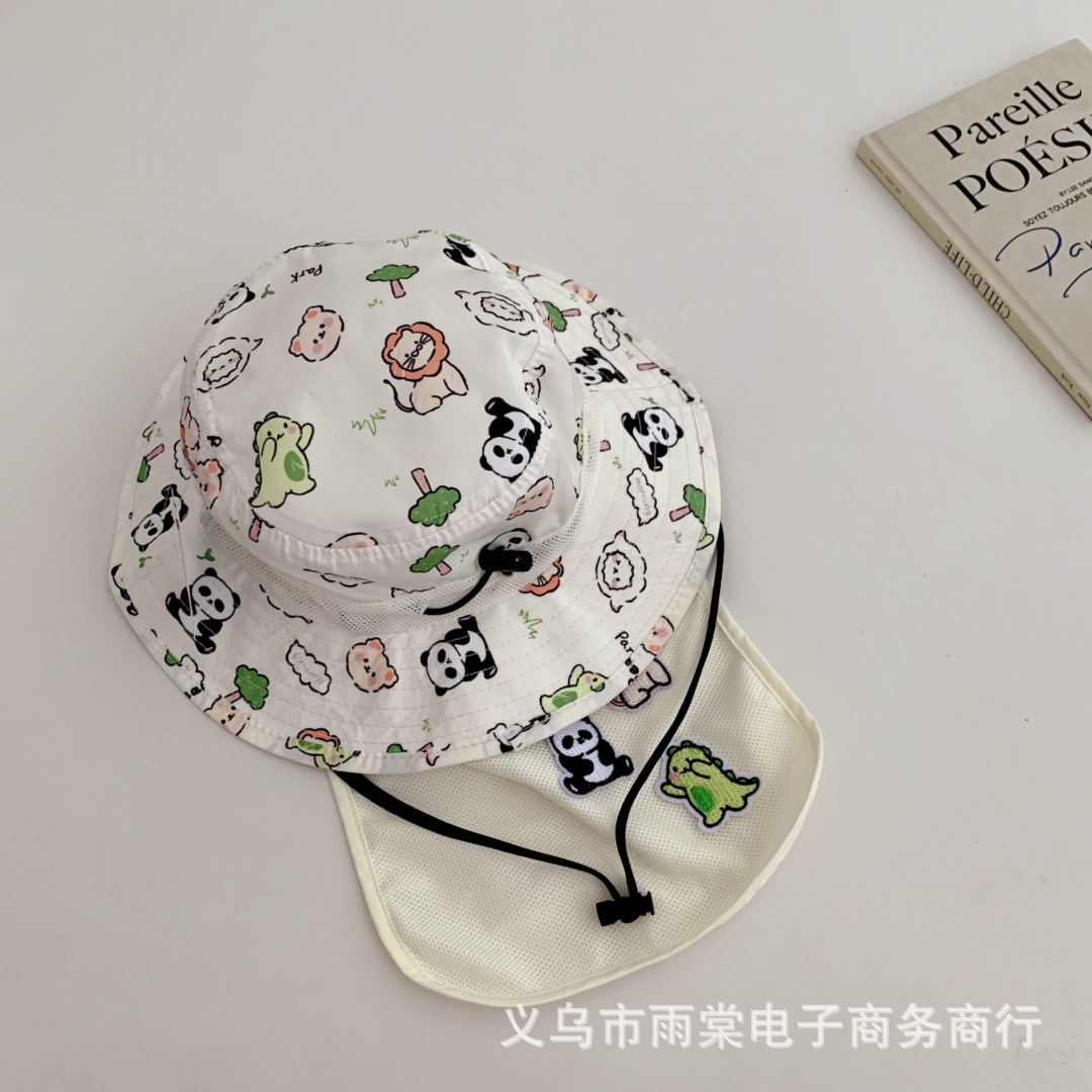 여름 어린이 속건성 어부 모자, 소년과 소녀를 위한 귀여운 만화 큰 챙 태양 보호 모자, 아기 캠핑 목도리 모자