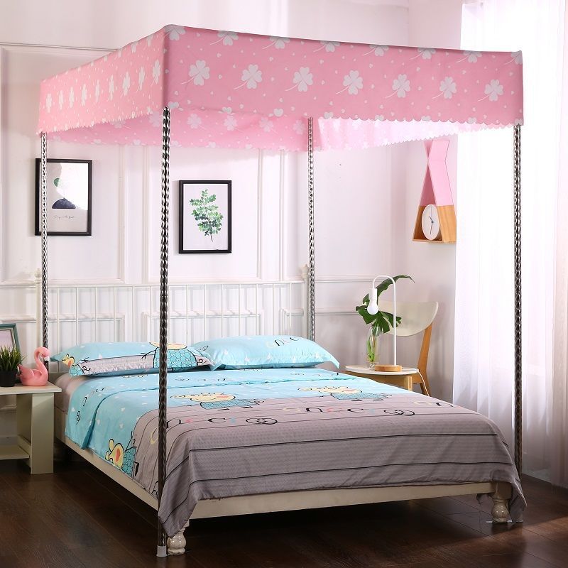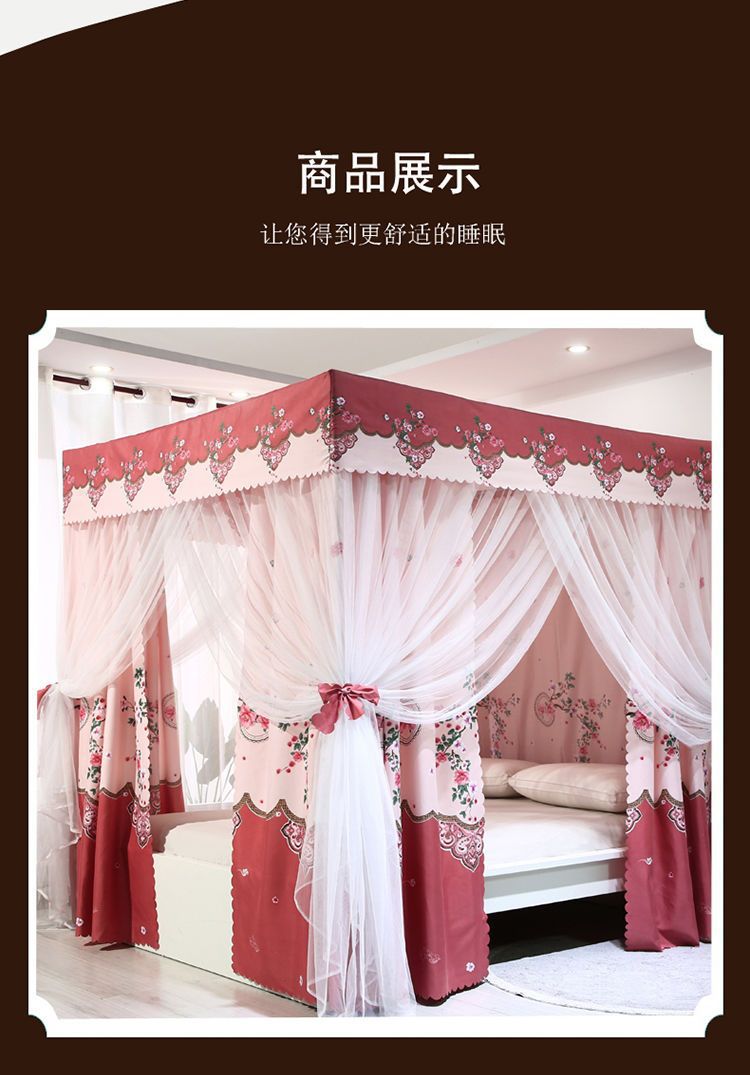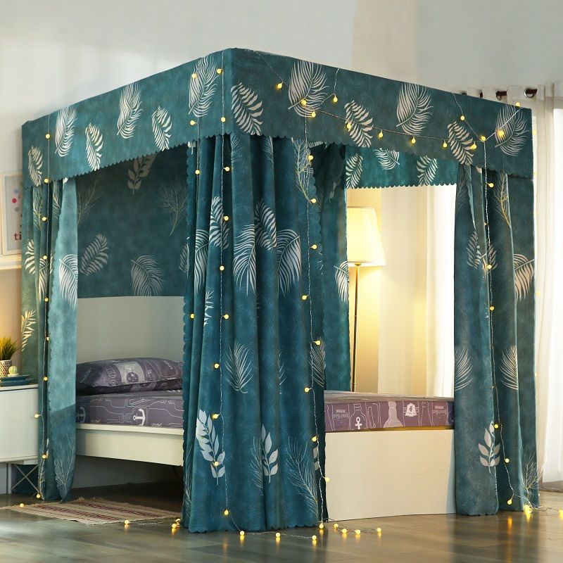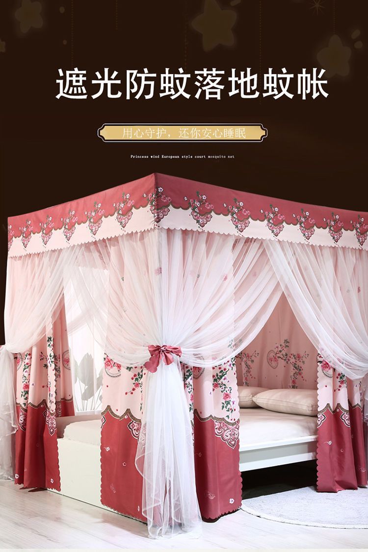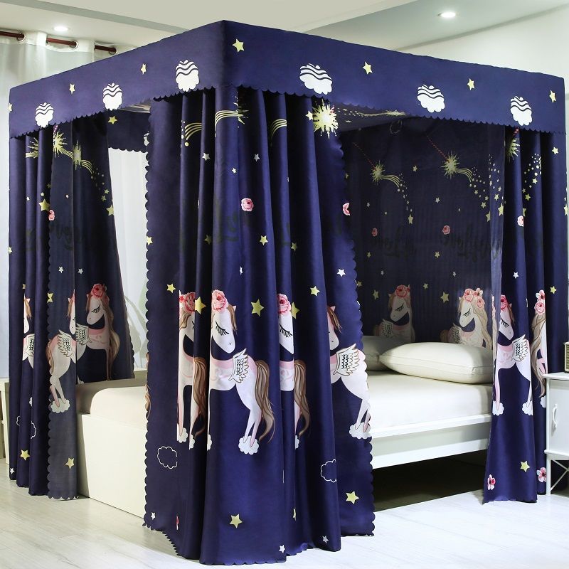 바닥부터 천장까지 닿는 암막 침대 커튼, 모기장, 일체형 침대 커튼, 기숙사 완전 밀폐형 3도어 방진 공주 소녀 스타일스토어 가기