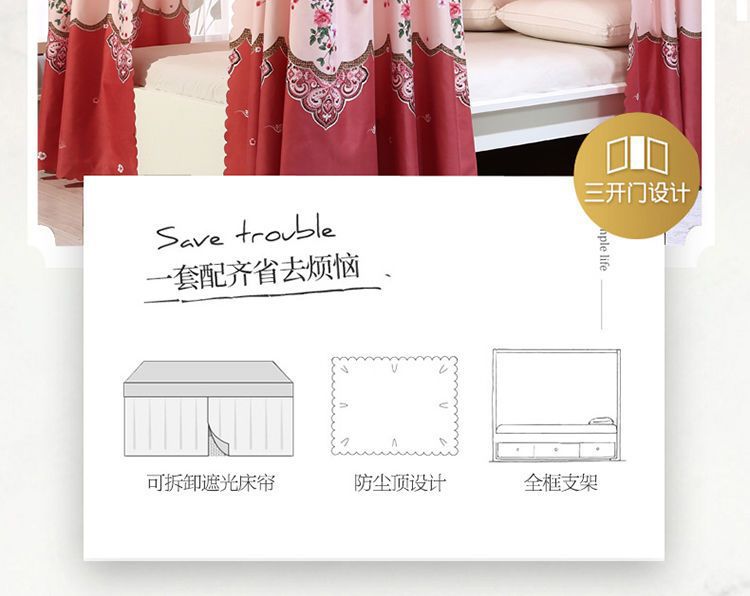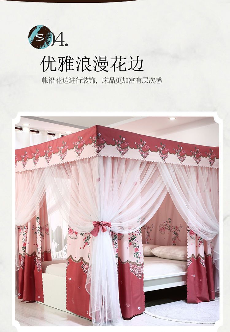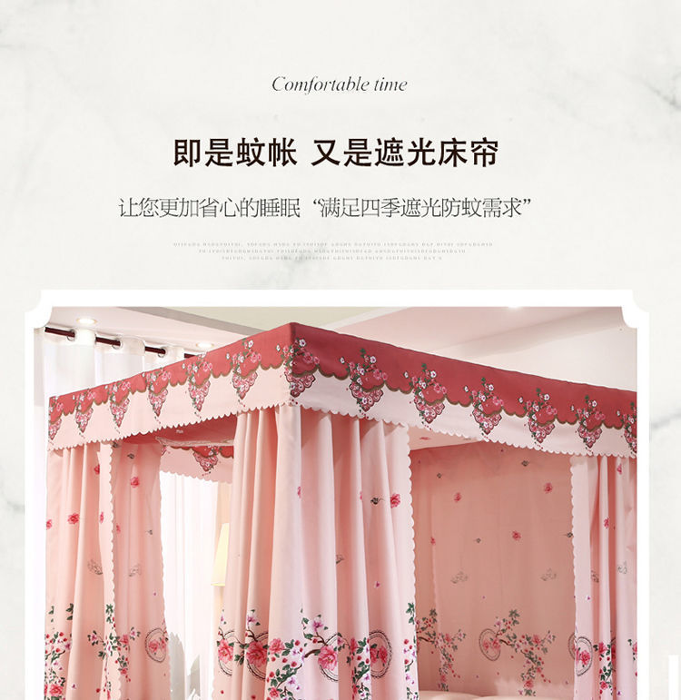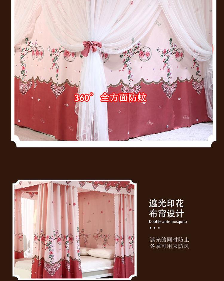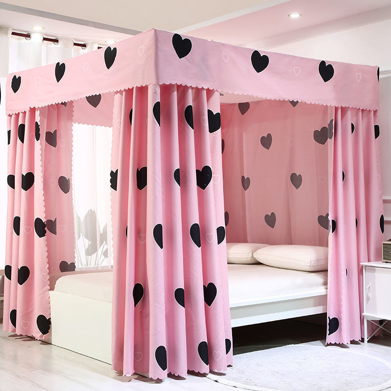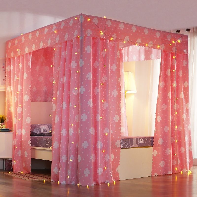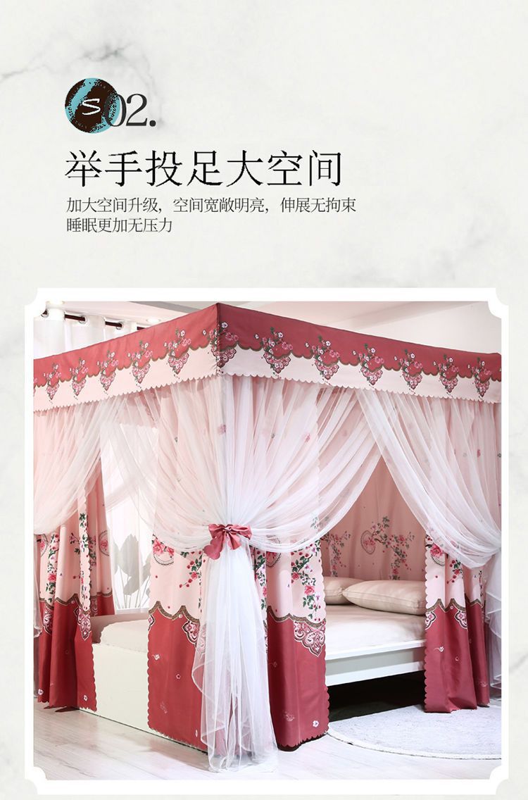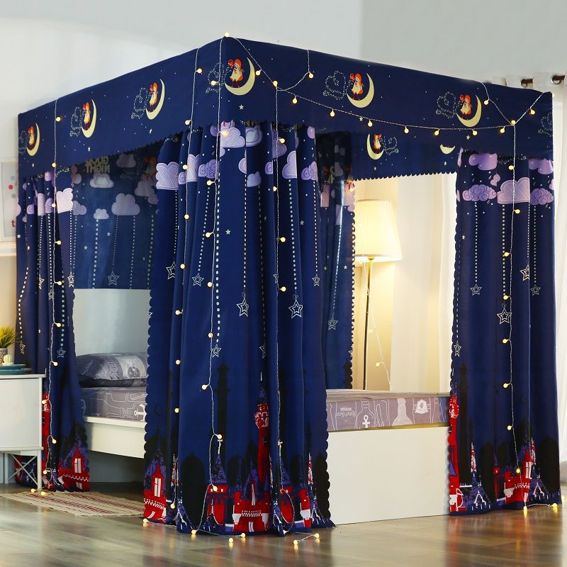 바닥부터 천장까지 닿는 암막 침대 커튼, 모기장, 일체형 침대 커튼, 기숙사 완전 밀폐형 3도어 방진 공주 소녀 스타일