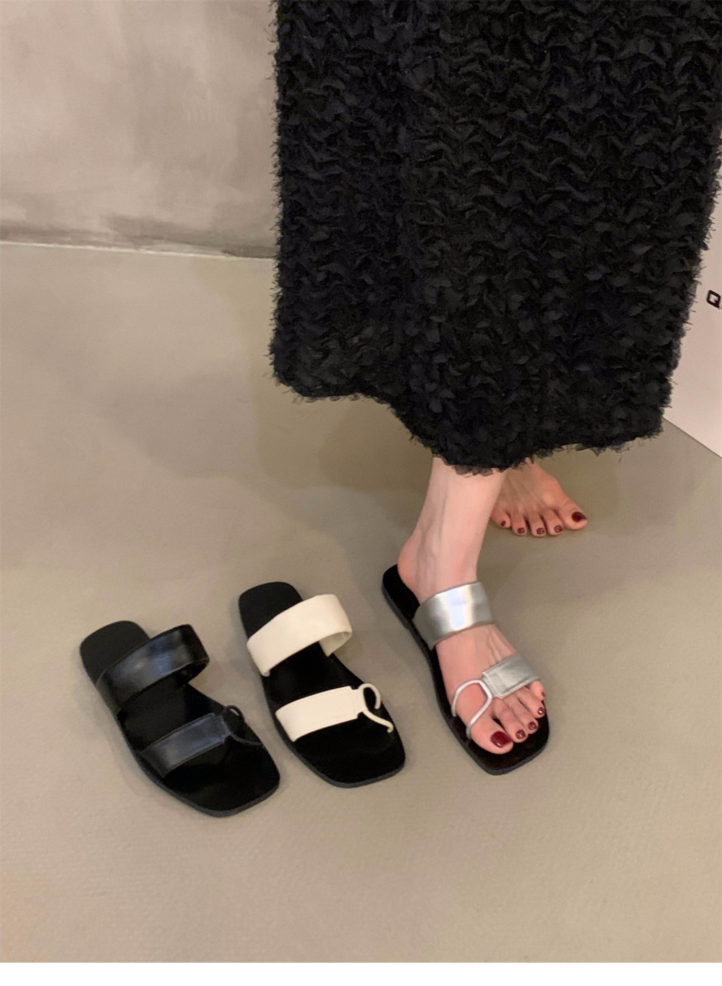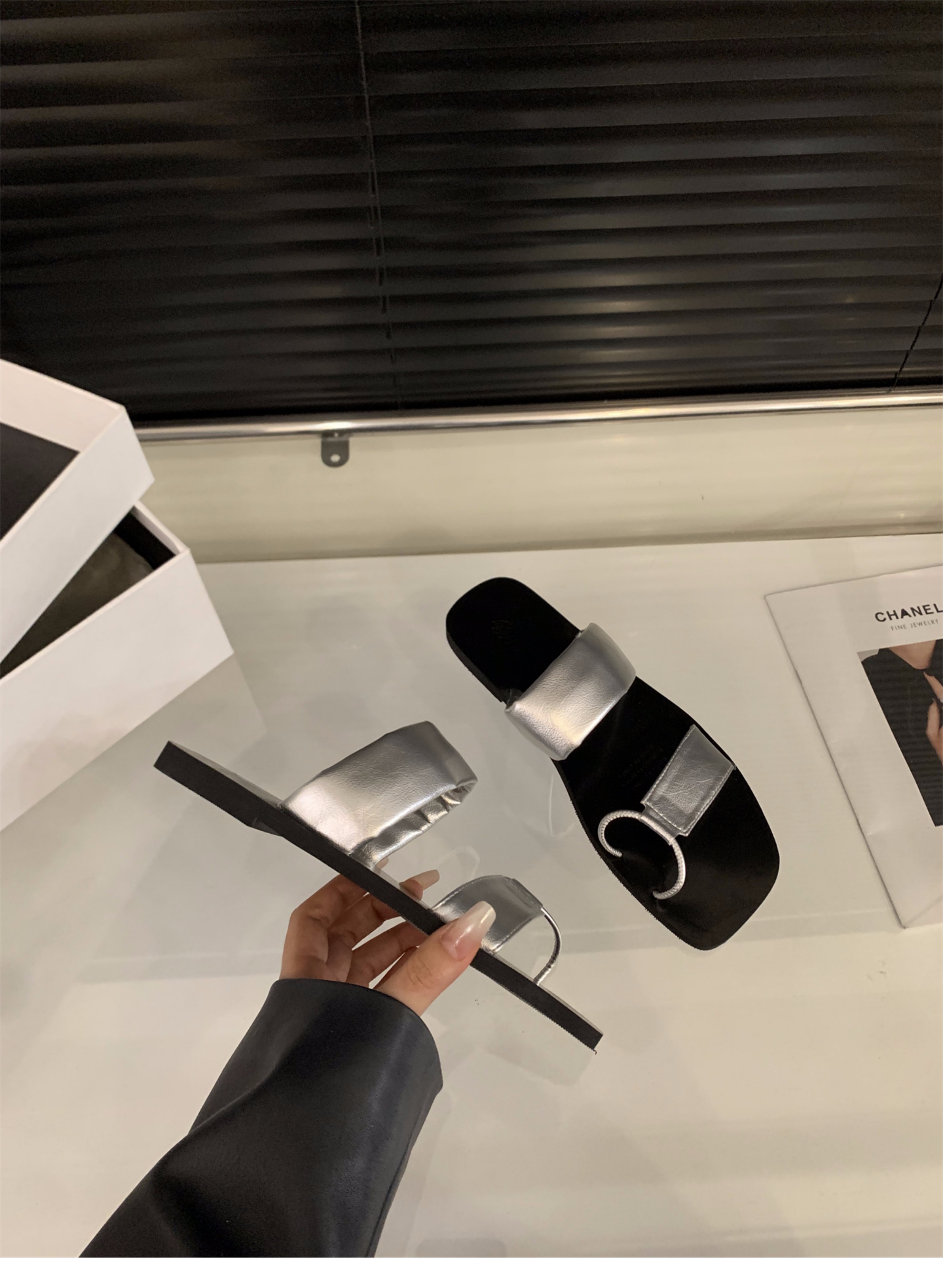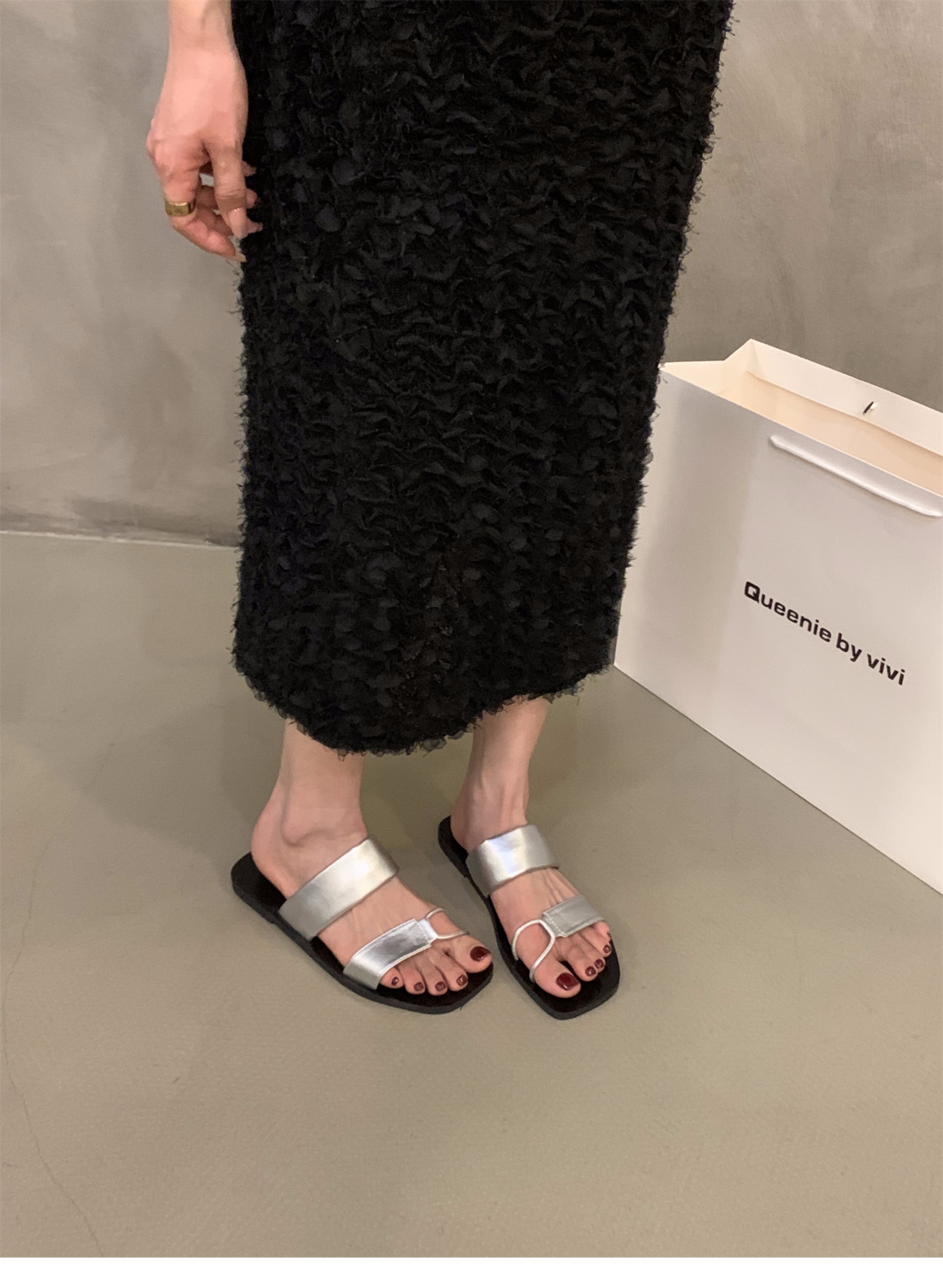 실버 프렌치 플랫 슬리퍼 여성 신발 겉옷 2025 새로운 여름 부드러운 바닥 해변 휴가 샌들스토어 가기