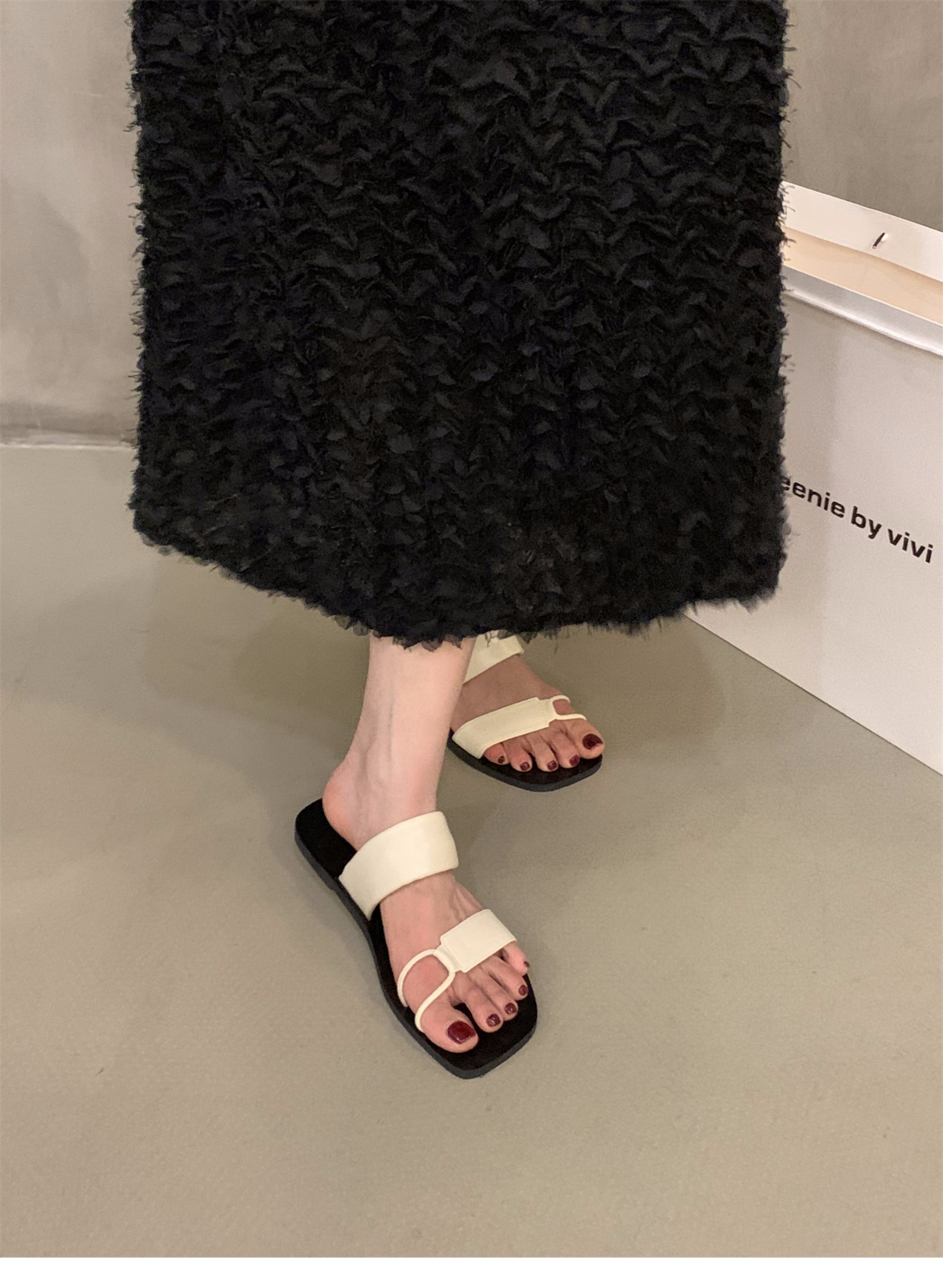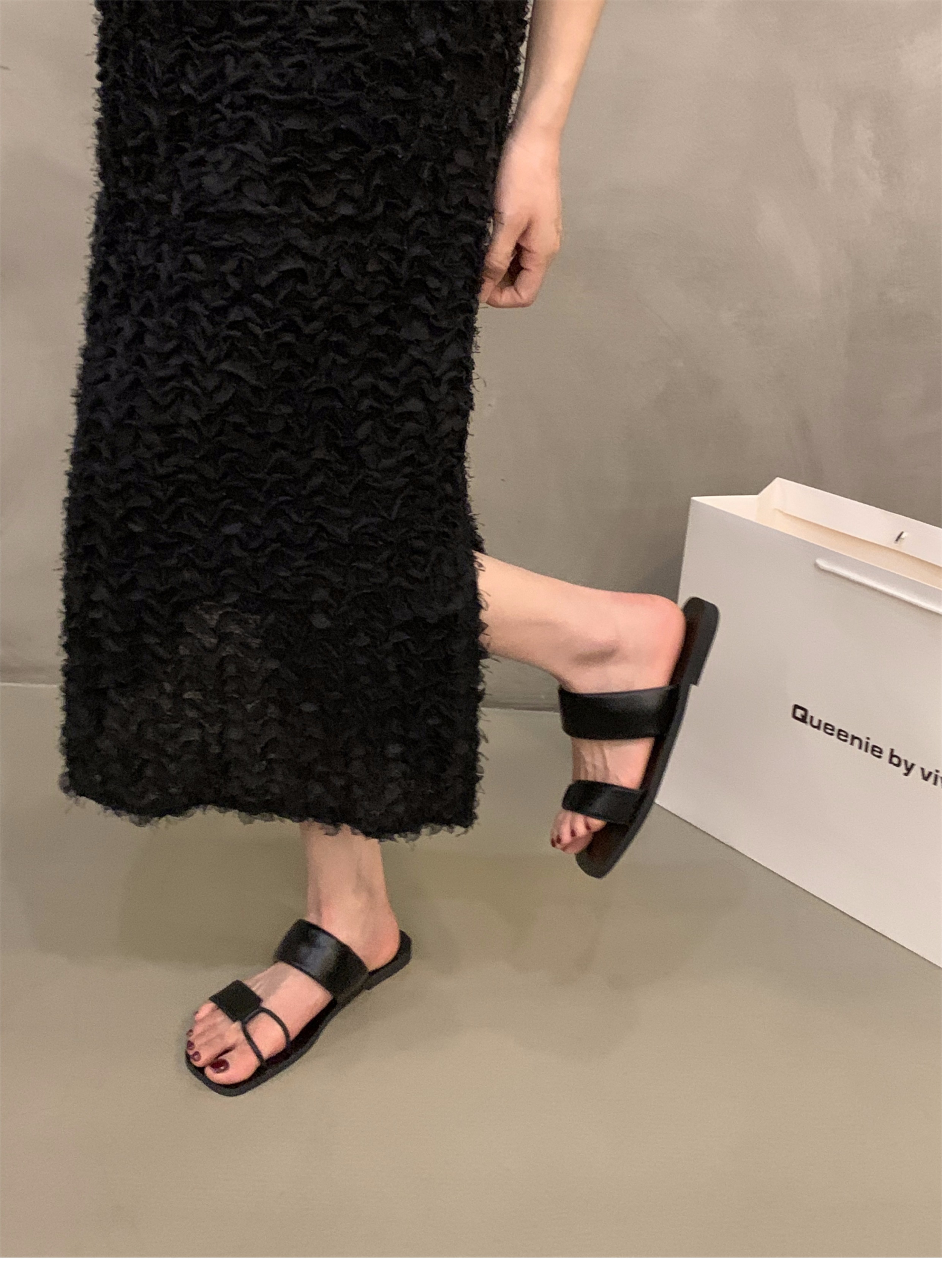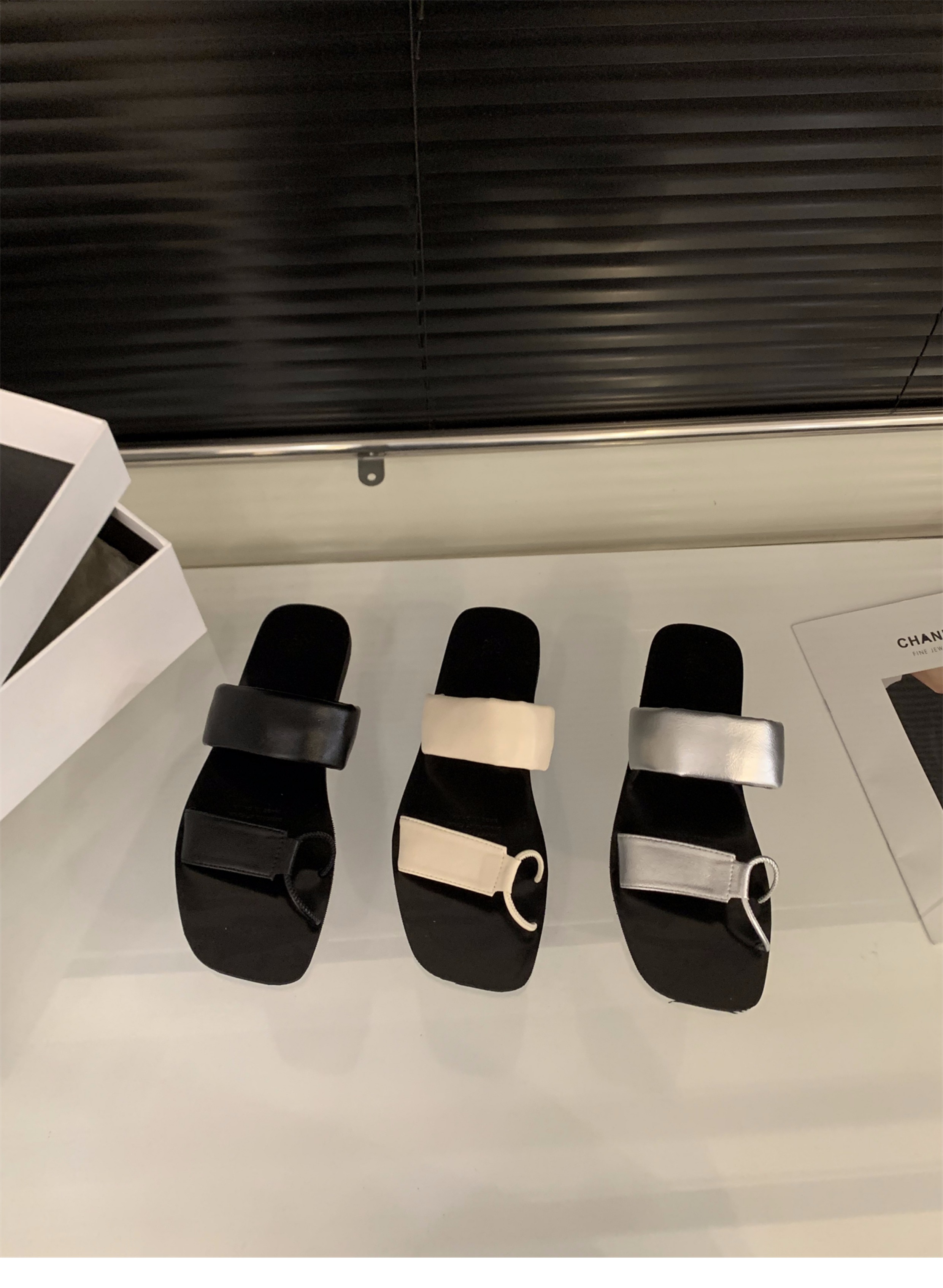 실버 프렌치 플랫 슬리퍼 여성 신발 겉옷 2025 새로운 여름 부드러운 바닥 해변 휴가 샌들스토어 가기