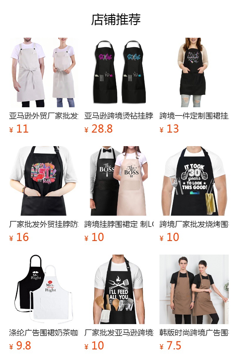 국경 간 뜨거운 판매 편지 매달려 목 앞치마 제조 업체 도매 야외 바베큐 케이터링 커피 숍 작업복 작업복스토어 가기