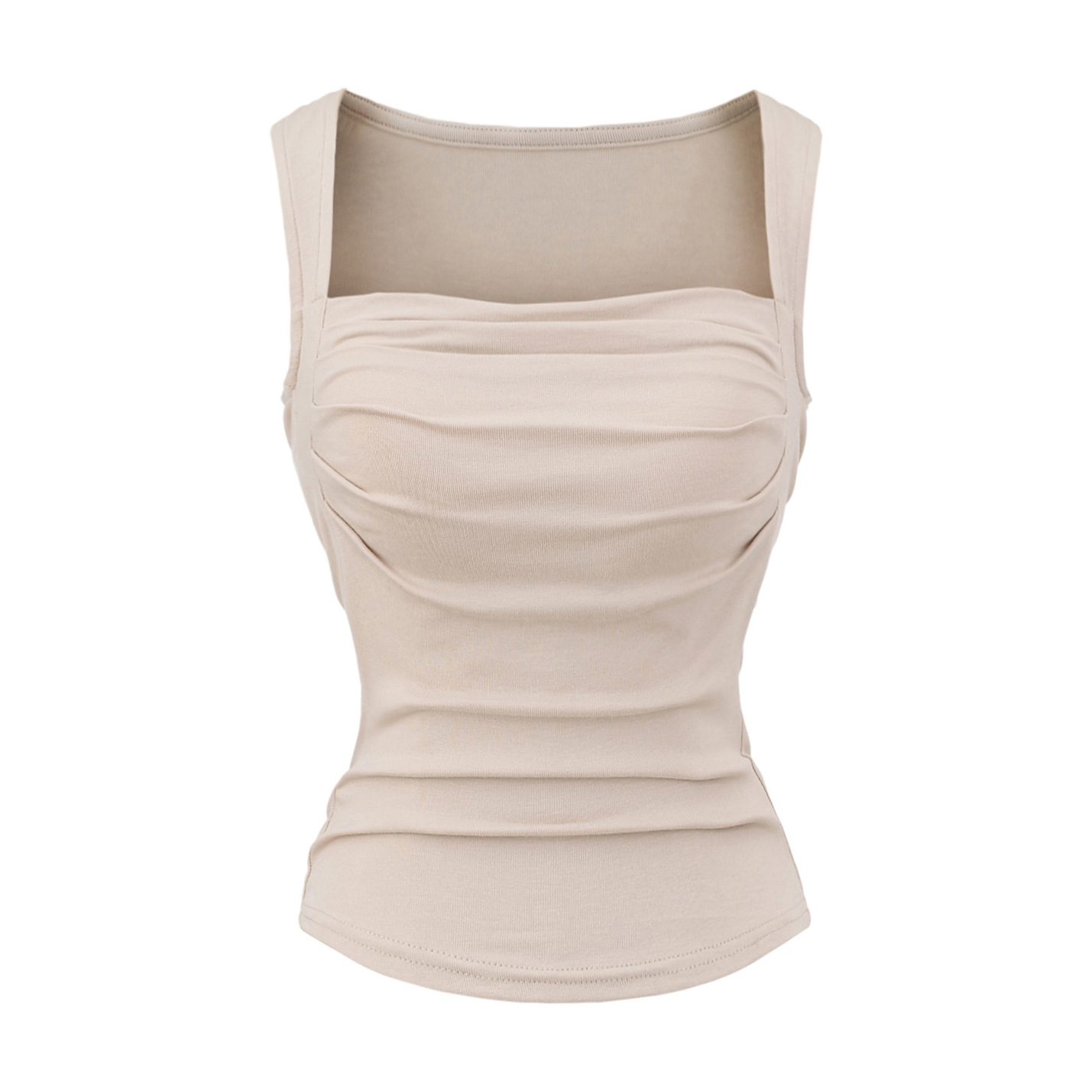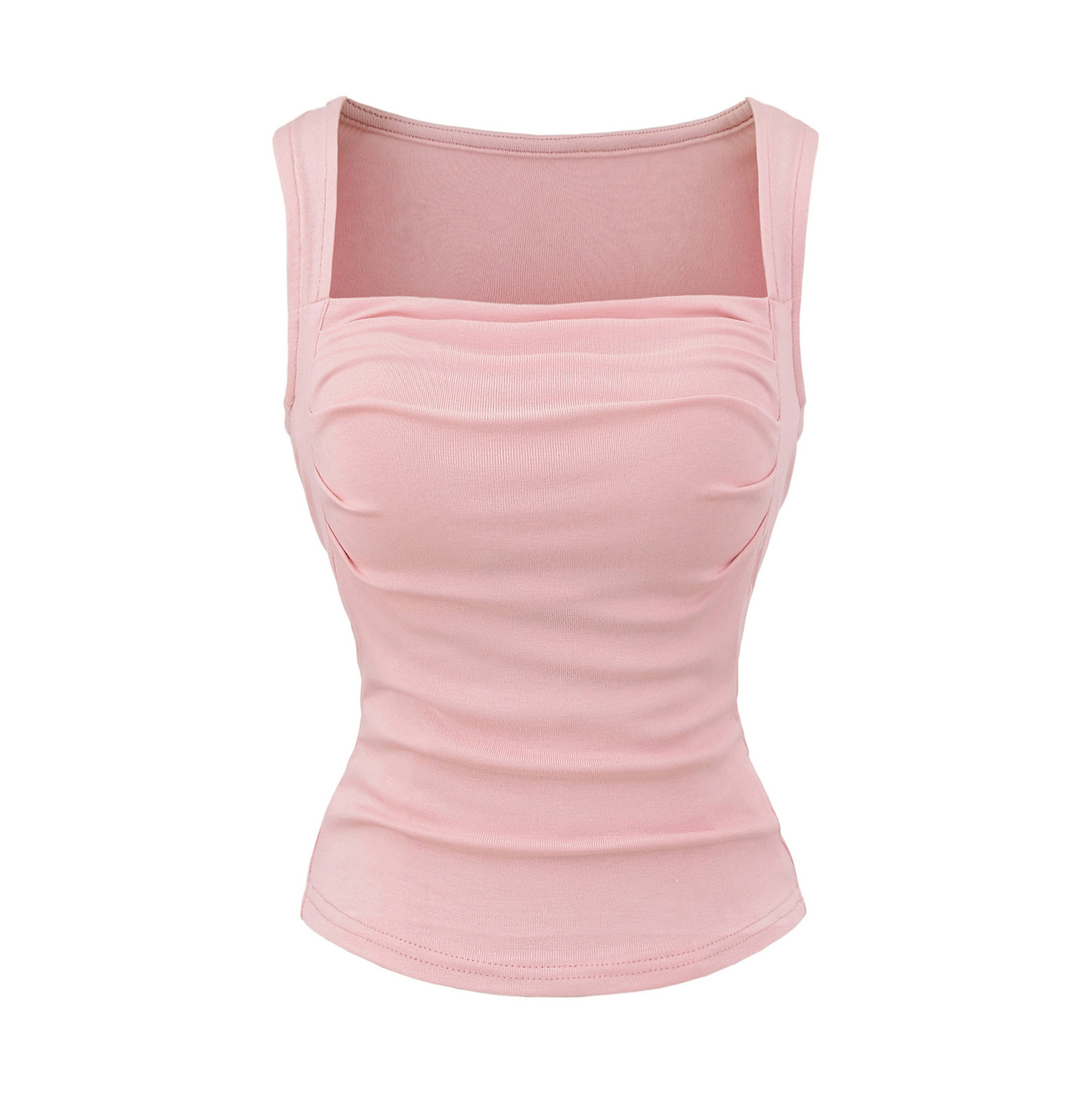 여자 2025 년 여름 스트레치 슬림 핏 플리츠 짧은 민소매 탑, 가슴 패드 스퀘어 칼라 카미 솔 조끼스토어 가기