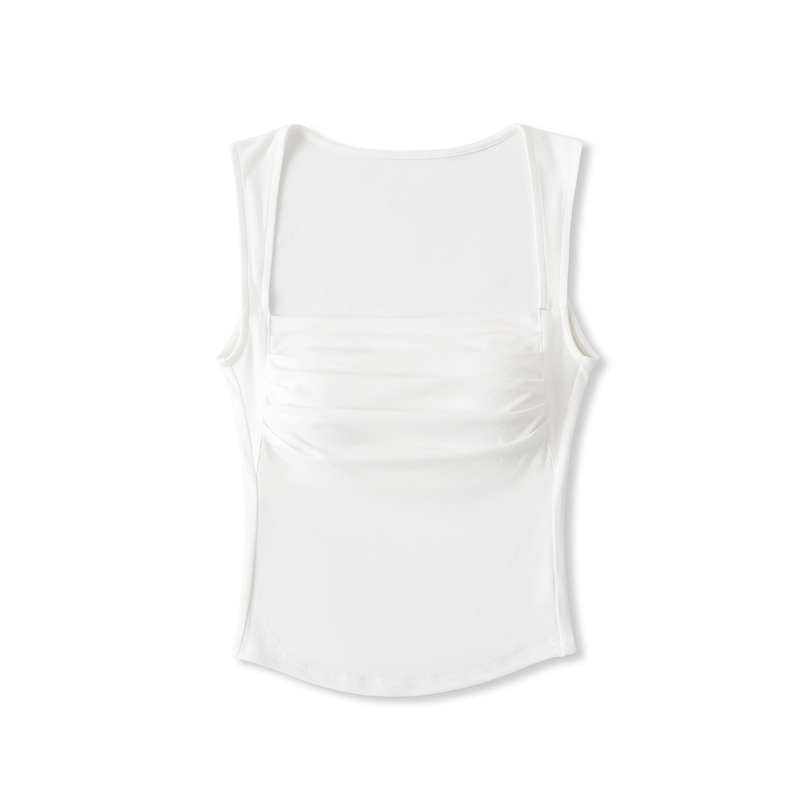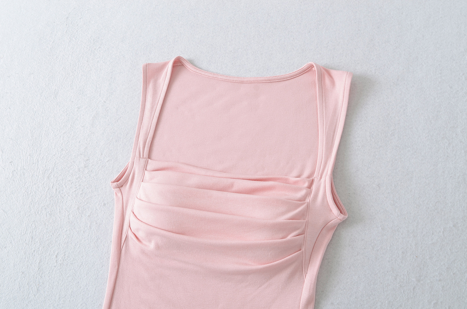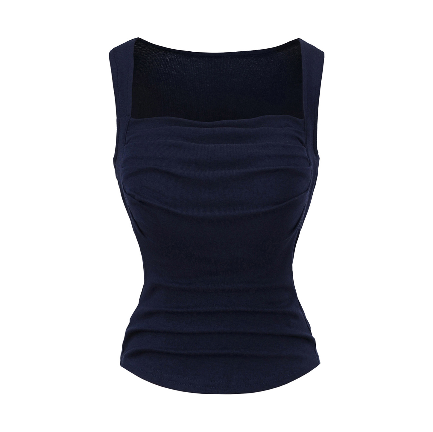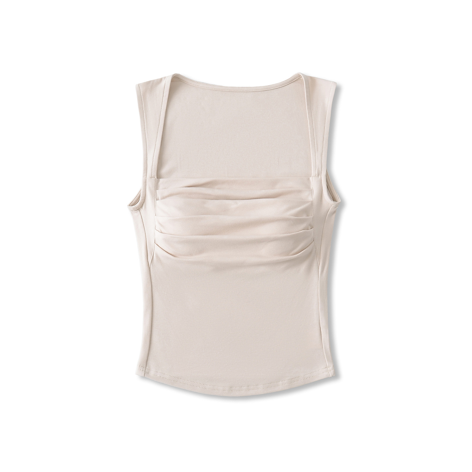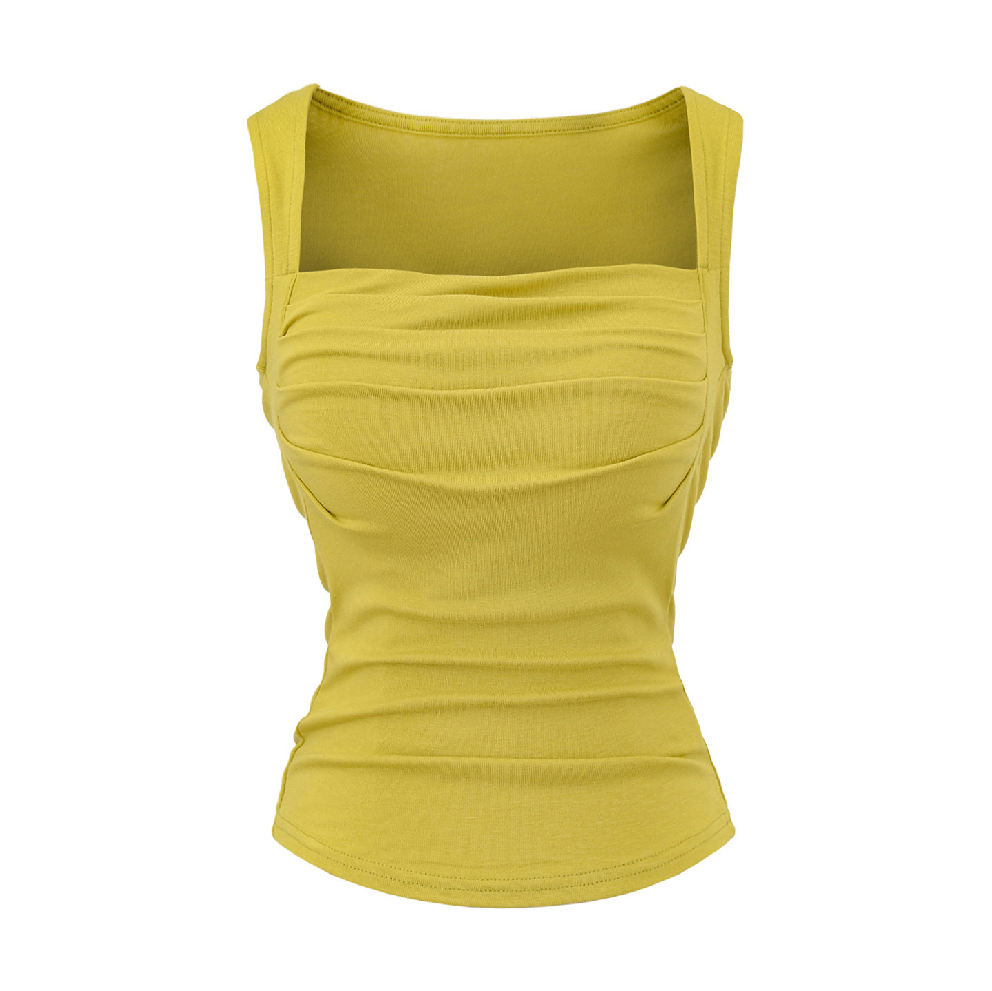 여자 2025 년 여름 스트레치 슬림 핏 플리츠 짧은 민소매 탑, 가슴 패드 스퀘어 칼라 카미 솔 조끼