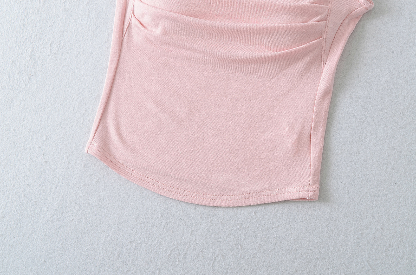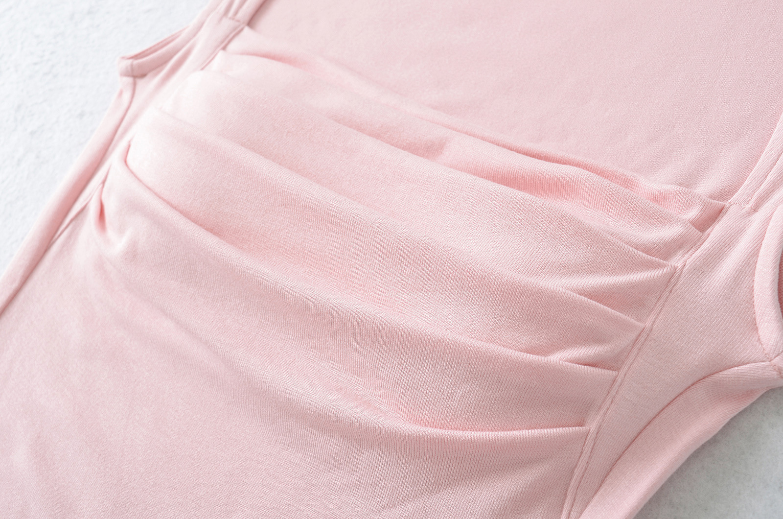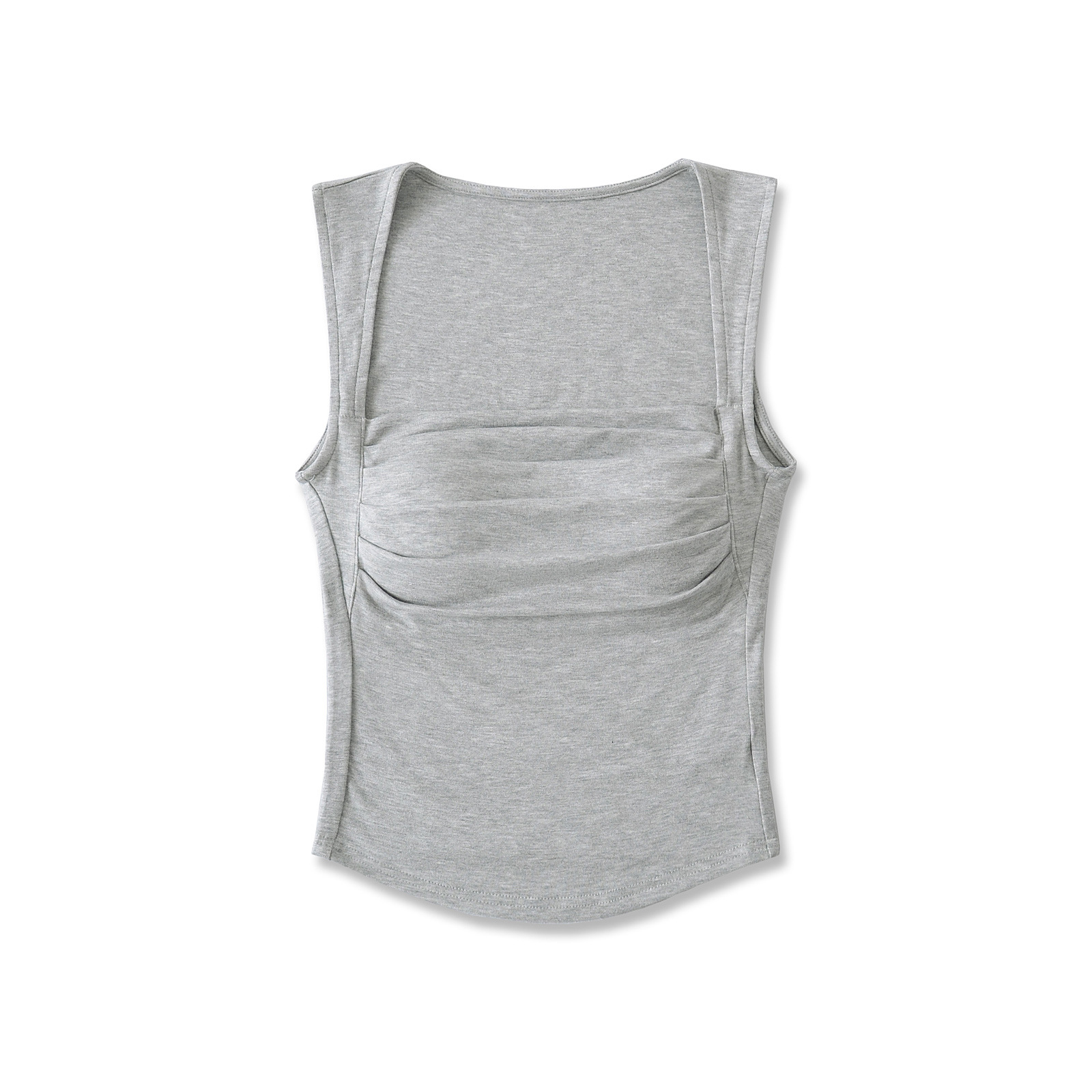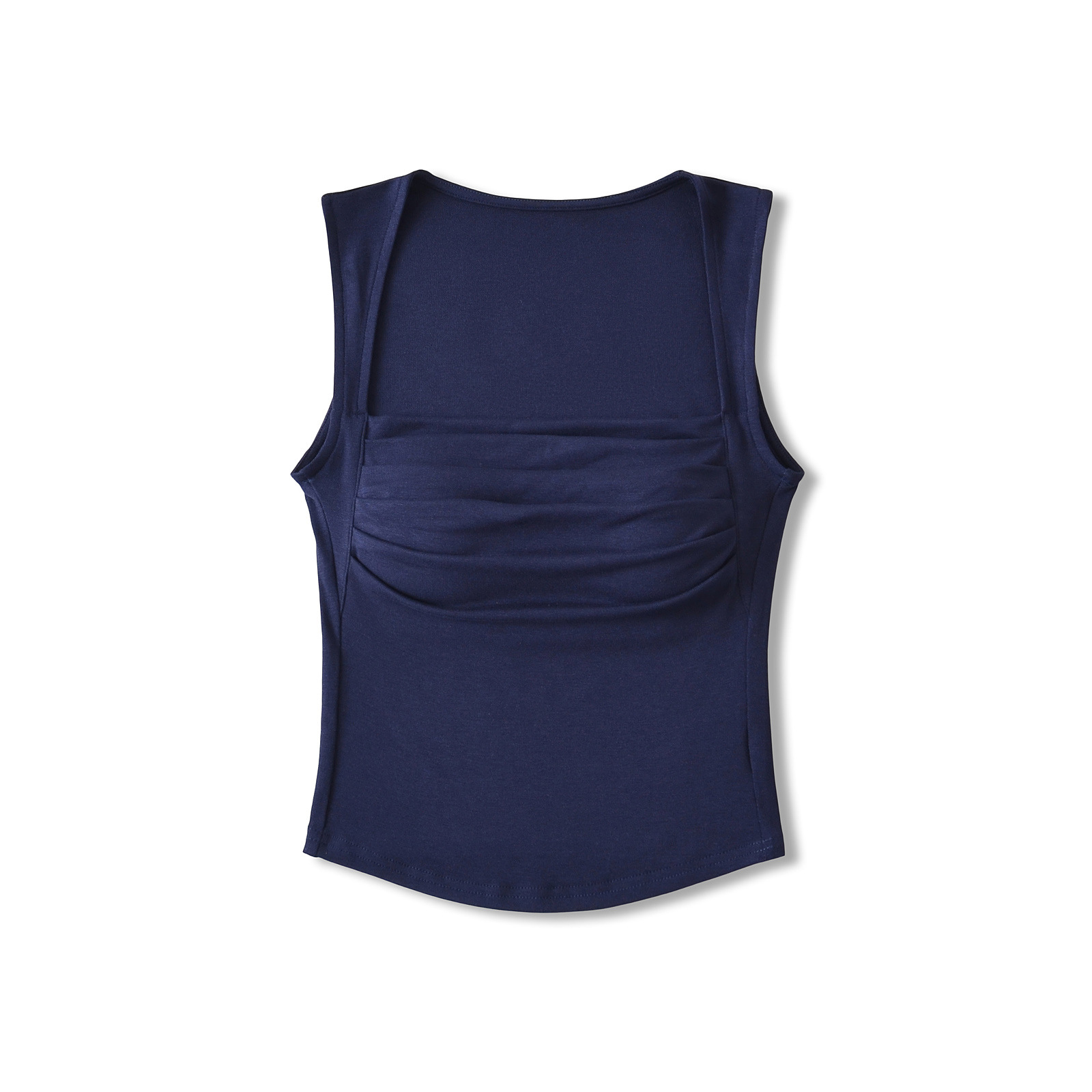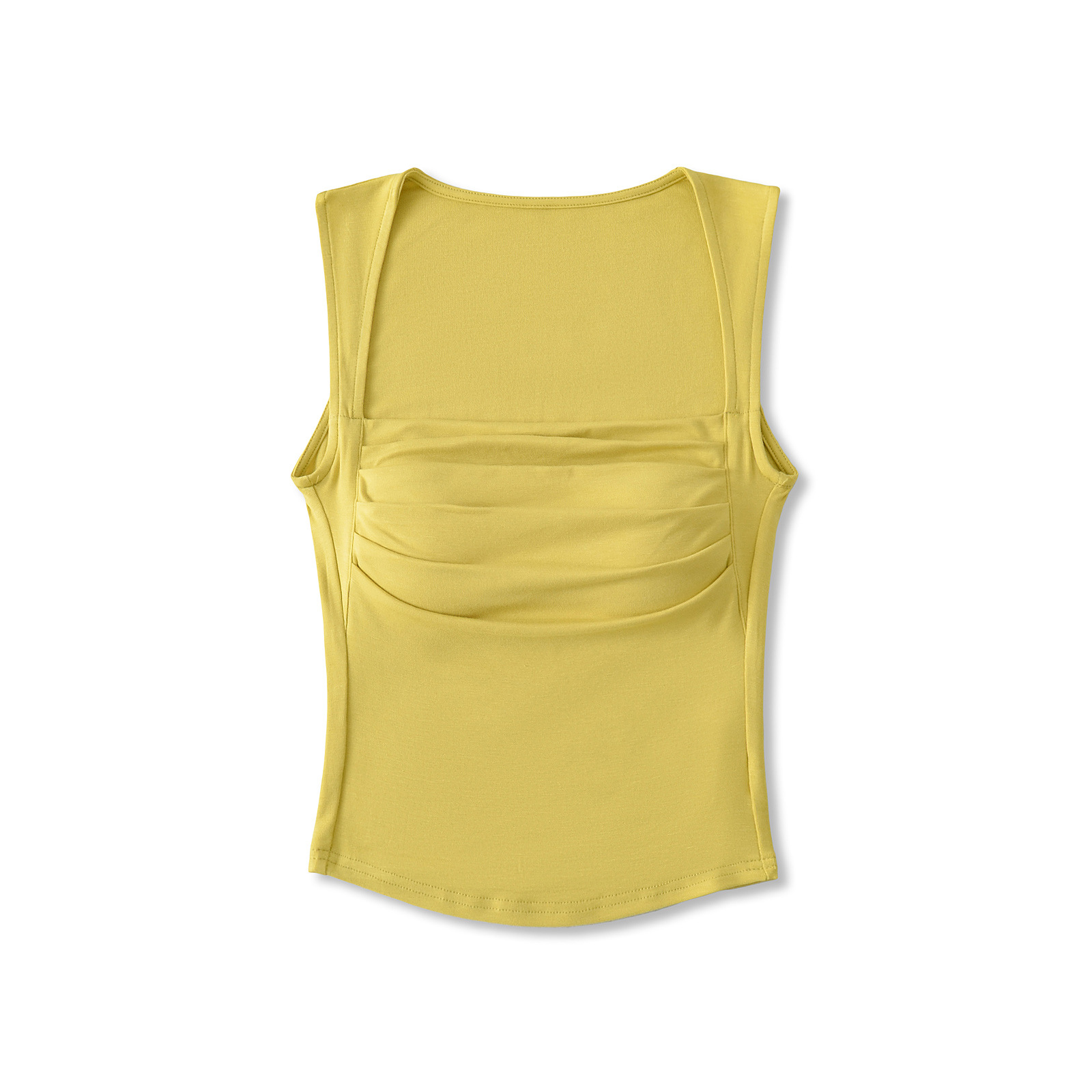 여자 2025 년 여름 스트레치 슬림 핏 플리츠 짧은 민소매 탑, 가슴 패드 스퀘어 칼라 카미 솔 조끼