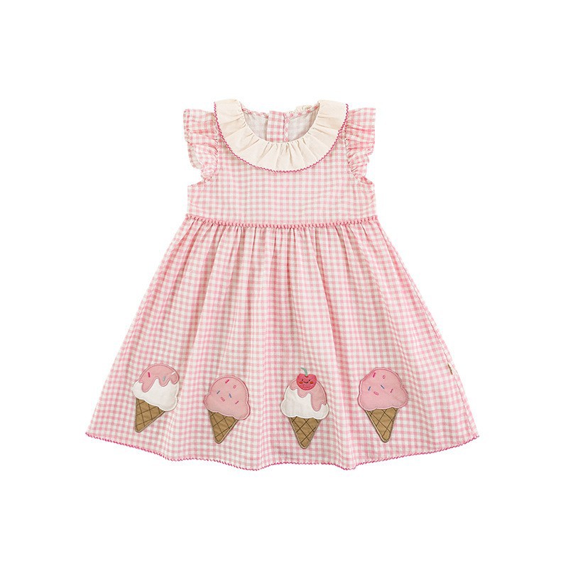 Wulib 소녀 아이스크림 패치 수 놓은 짧은 소매 원피스 여름 곡선 치아 달콤한 옷깃 작은 플라이 슬리브 스커트