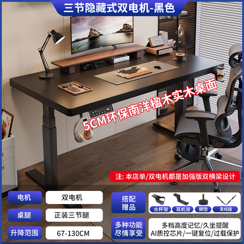 • 5CM 원목 데스크탑 [숨겨진 듀얼 모터 3개 섹션] 탄소 섬유 블랙