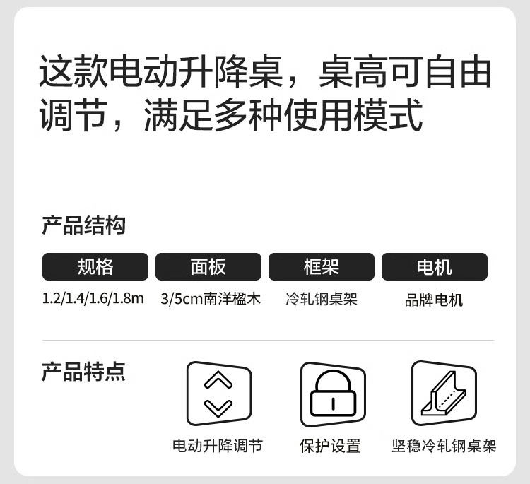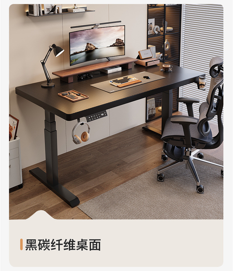 • 업그레이드된 5CM 원목 데스크탑 [듀얼 모터 및 2개 섹션] 탄소 섬유 블랙