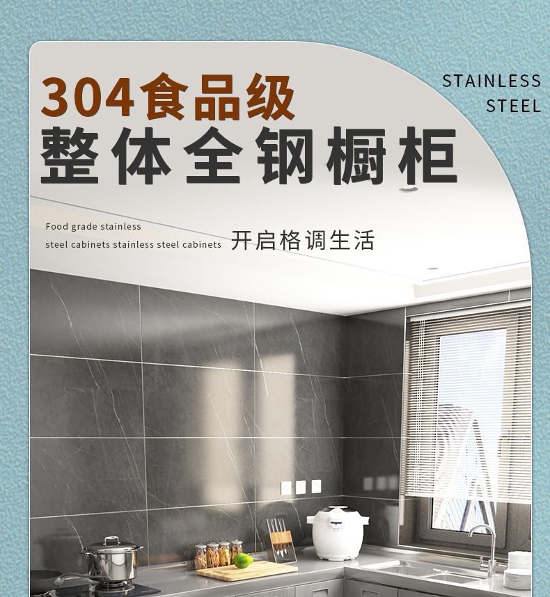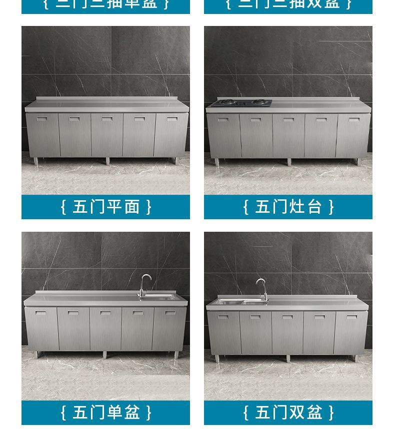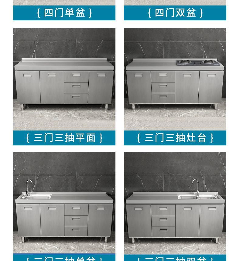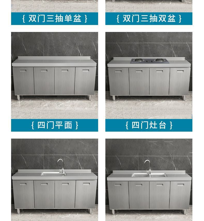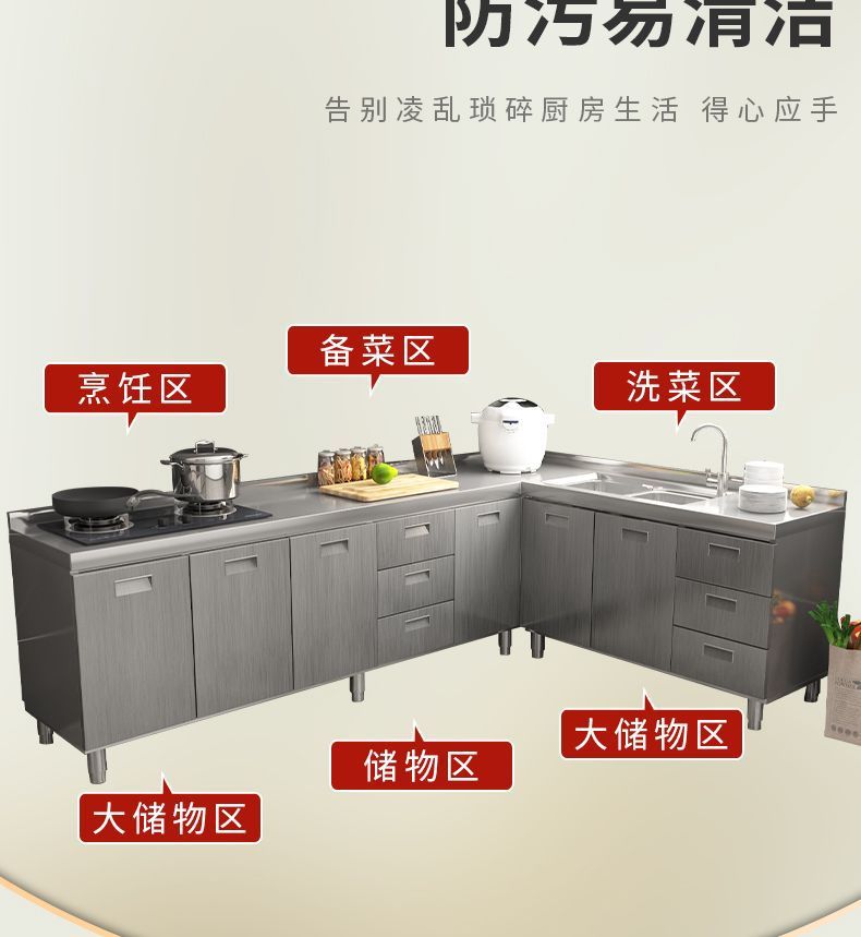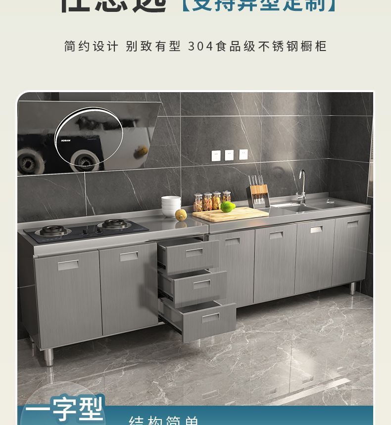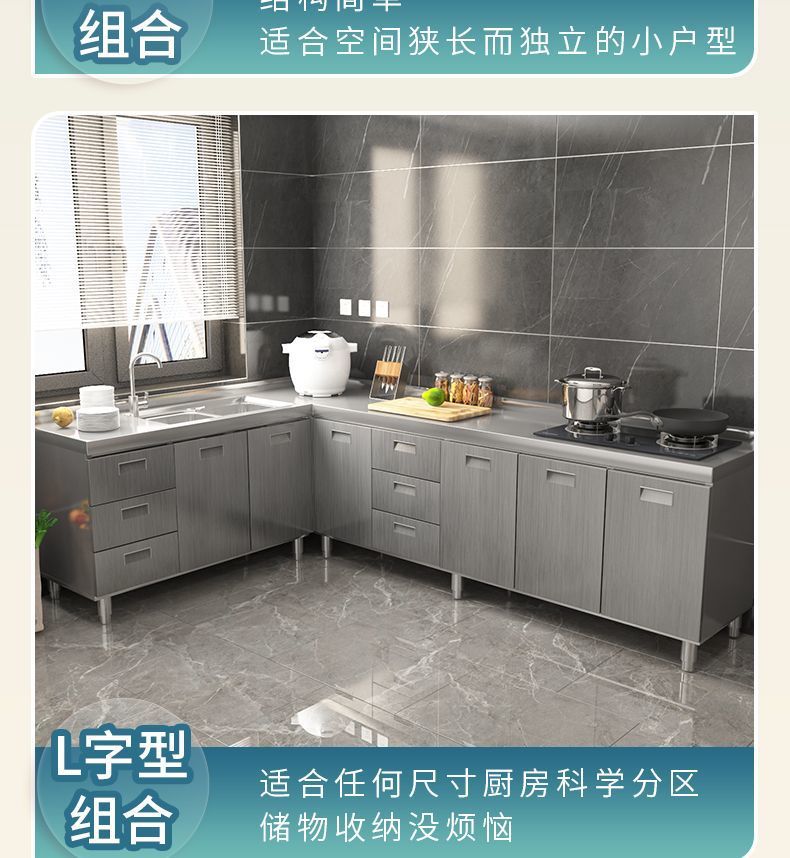 J^304 일체형 스테인레스 스틸 주방 캐비닛 매우 두꺼운 간단한 찬장과 스토브 일체형 농촌 저장 가구 소규모 가구스토어 가기