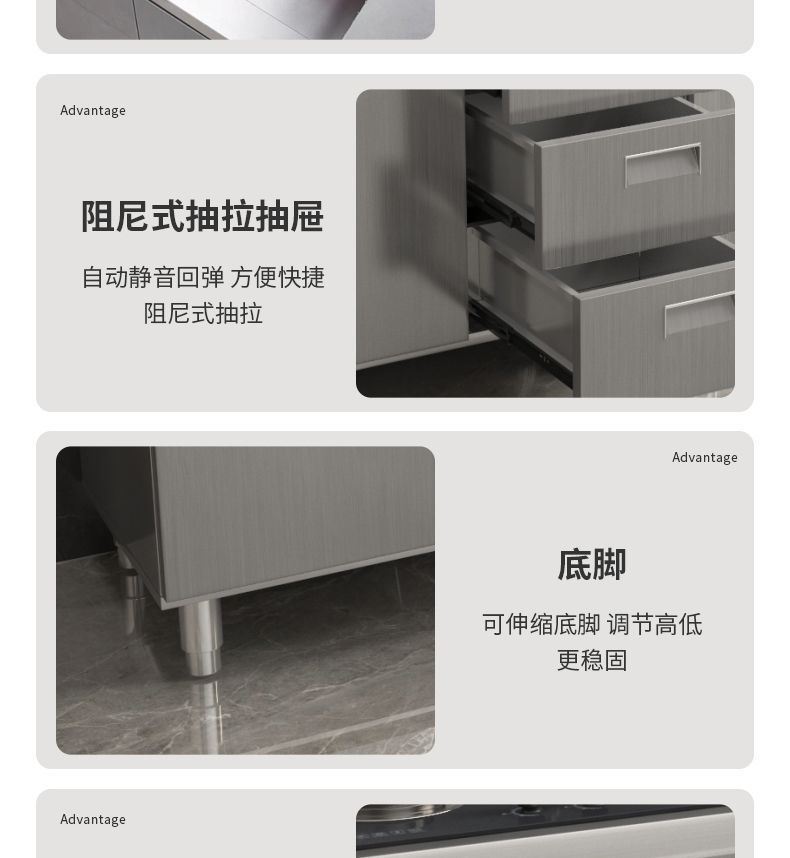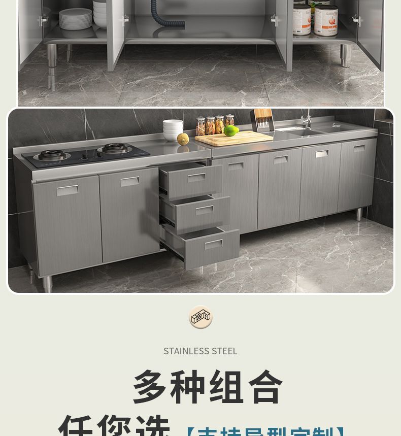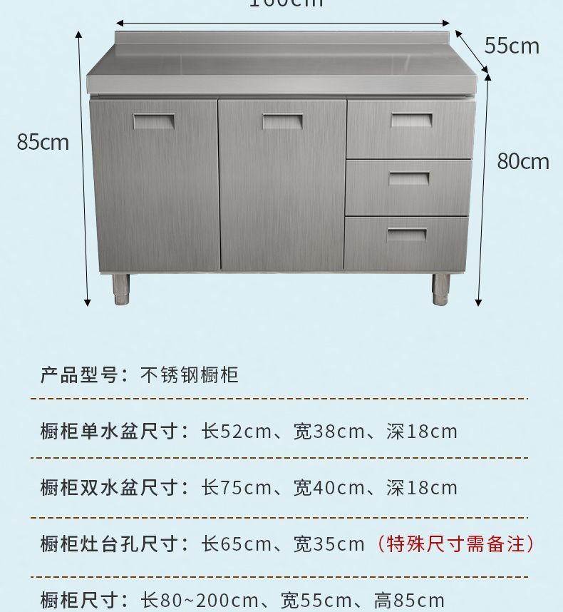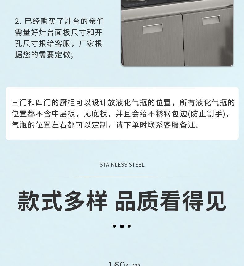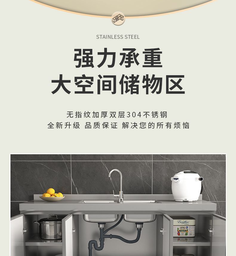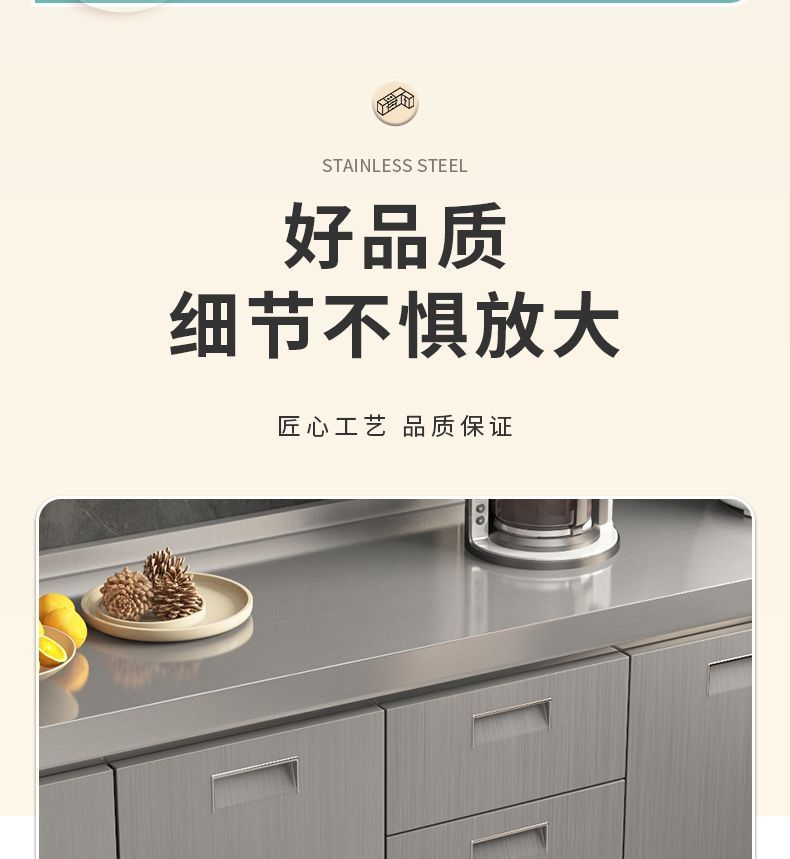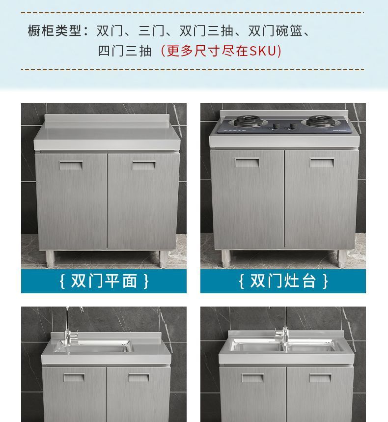 J^304 일체형 스테인레스 스틸 주방 캐비닛 매우 두꺼운 간단한 찬장과 스토브 일체형 농촌 저장 가구 소규모 가구스토어 가기