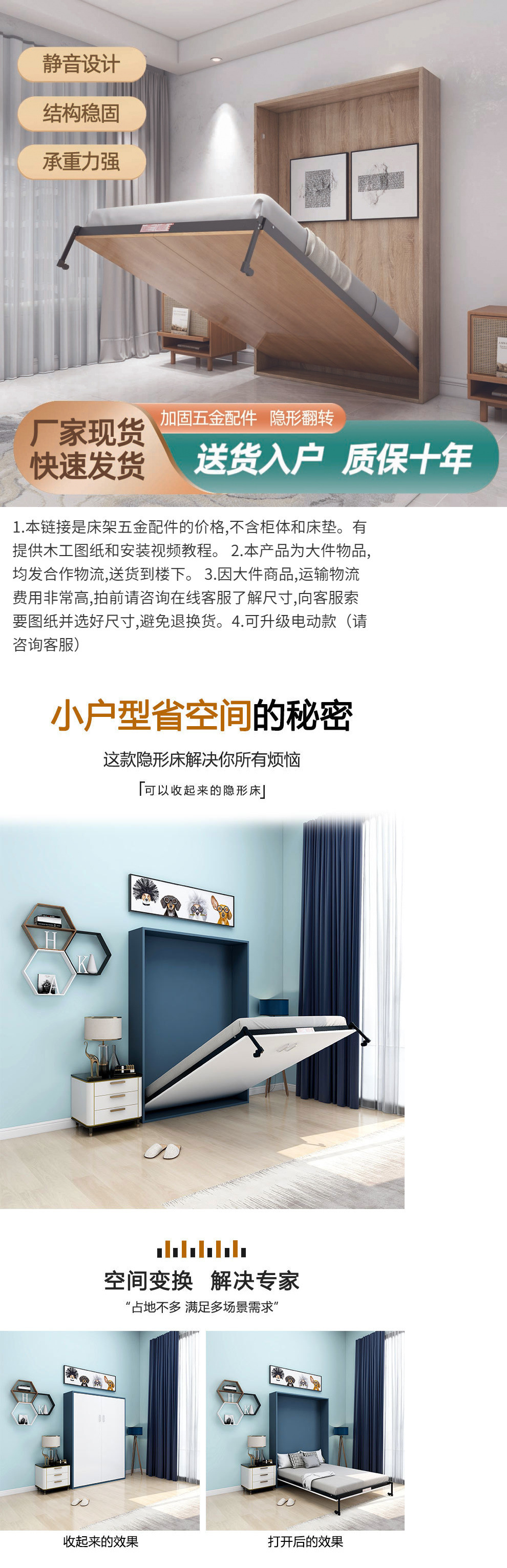 다기능 보이지 않는 침대 하드웨어 액세서리 접이식 침대 보이지 않는 침대 옷장 통합 플립 다운 침대 하드웨어 전기 침대 프레임스토어 가기