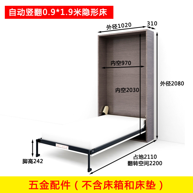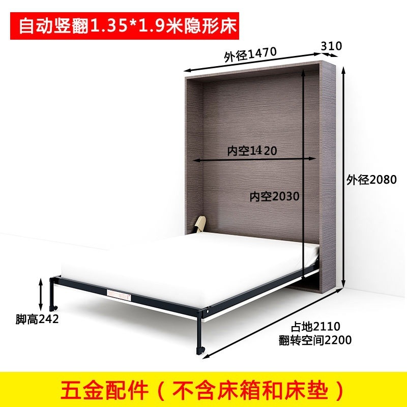 다기능 보이지 않는 침대 하드웨어 액세서리 접이식 침대 보이지 않는 침대 옷장 통합 플립 다운 침대 하드웨어 전기 침대 프레임