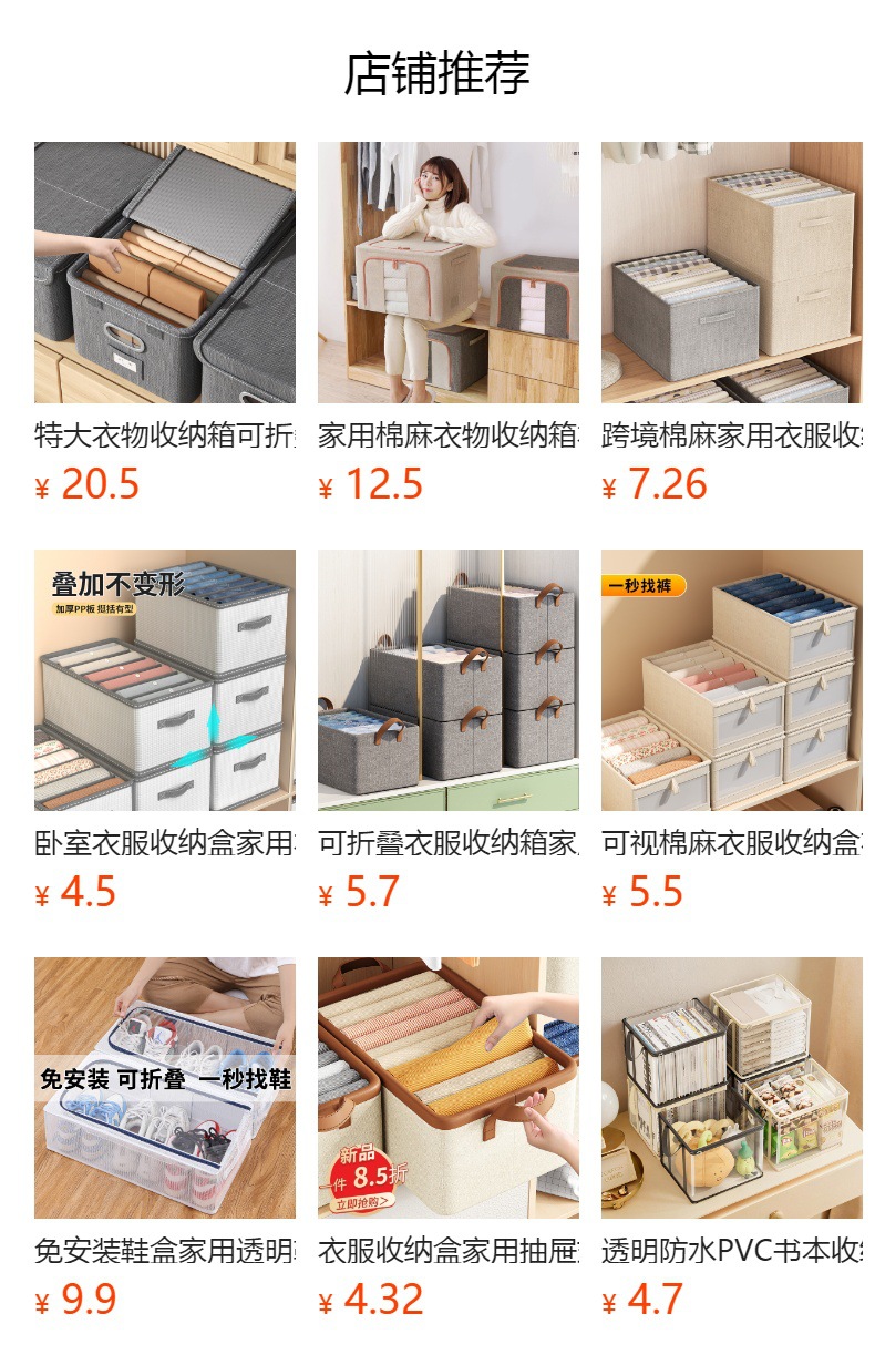 시각적 면 및 린넨 의류 보관 상자 가정용 직물 의류 이동 및 정리 상자 접이식 기숙사 보관 바구니 도매스토어 가기