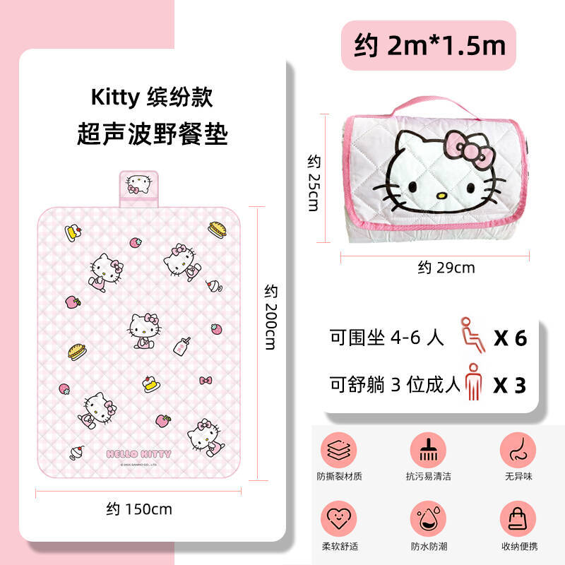 키티 자동차 야외 피크닉 매트 잔디 방습 방수 초대형 두꺼운 비치 매트 여성의 자율 주행 여행 장비스토어 가기