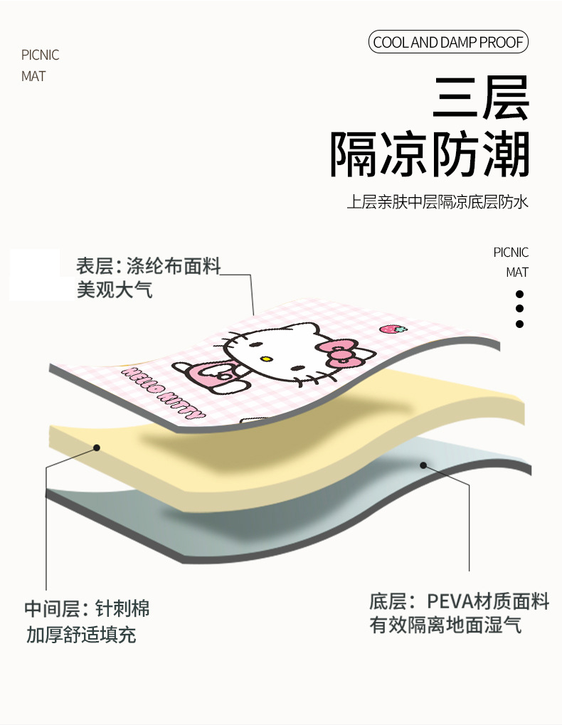 키티 자동차 야외 피크닉 매트 잔디 방습 방수 초대형 두꺼운 비치 매트 여성의 자율 주행 여행 장비