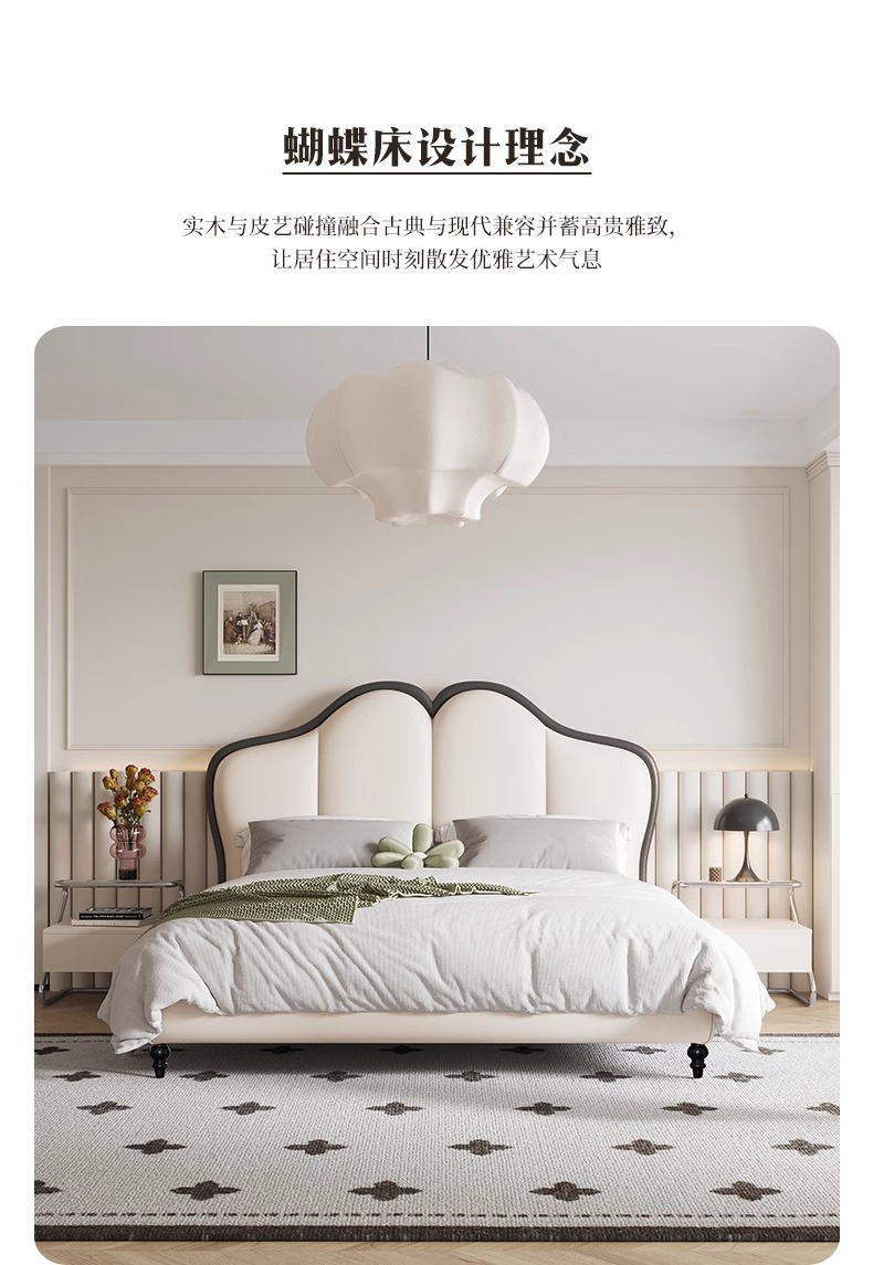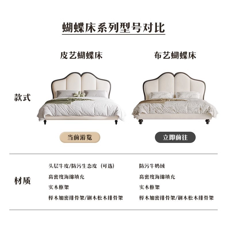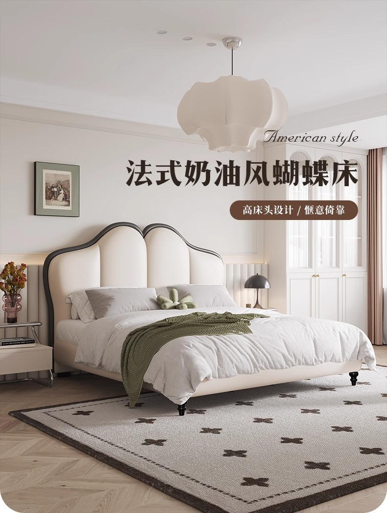 크림 스타일 마스터 침실 침대 인터넷 레드 나비 공주 침대 조명 럭셔리 현대 간단한 1.8 더블 퀸 침대스토어 가기