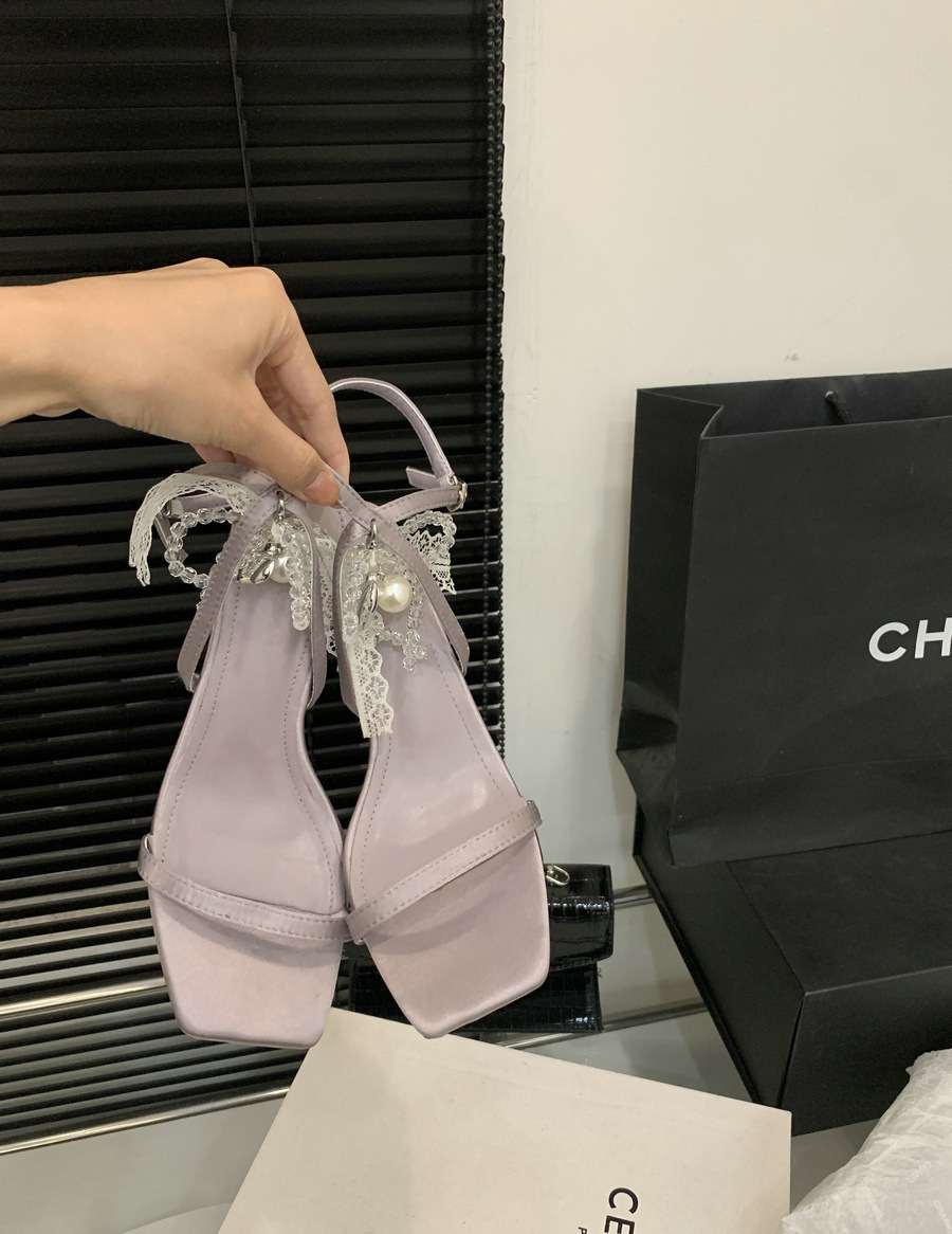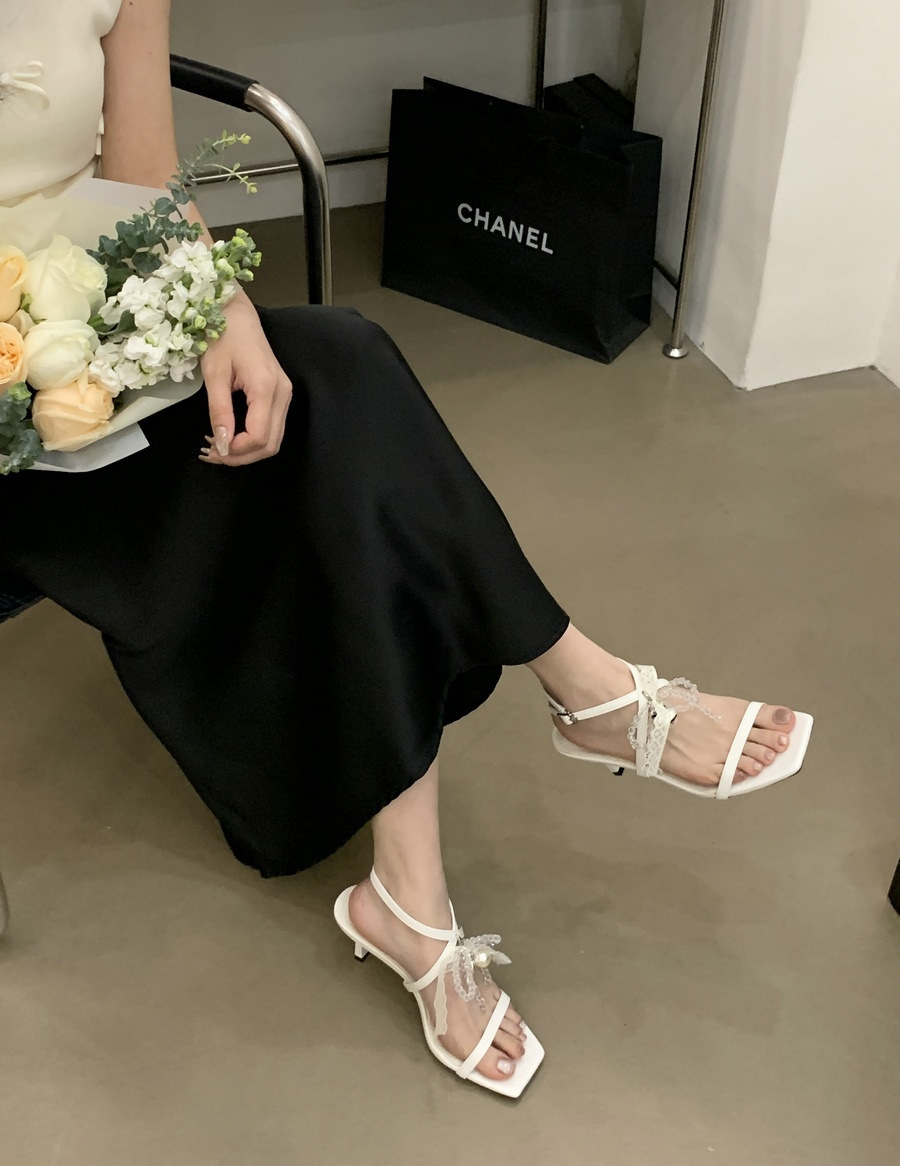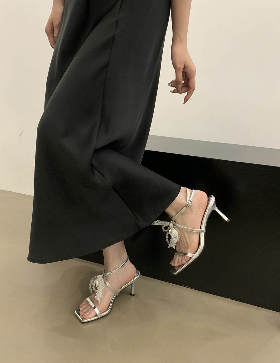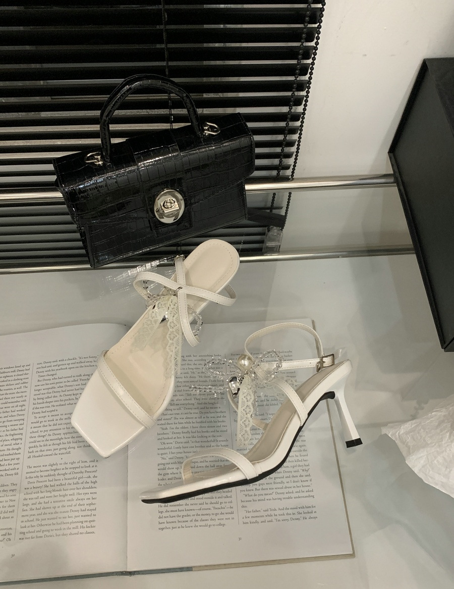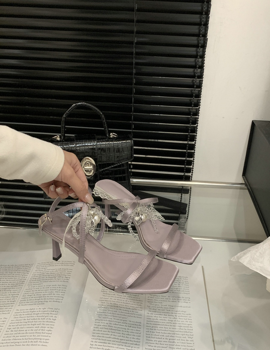 2025 봄과 여름 새로운 스타일의 라인스톤 크로스 스트랩 샌들 스퀘어 토 섹시한 스틸레토 오픈 토 여성 신발스토어 가기