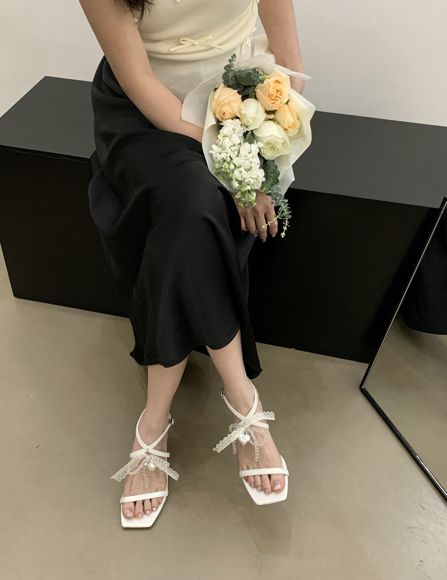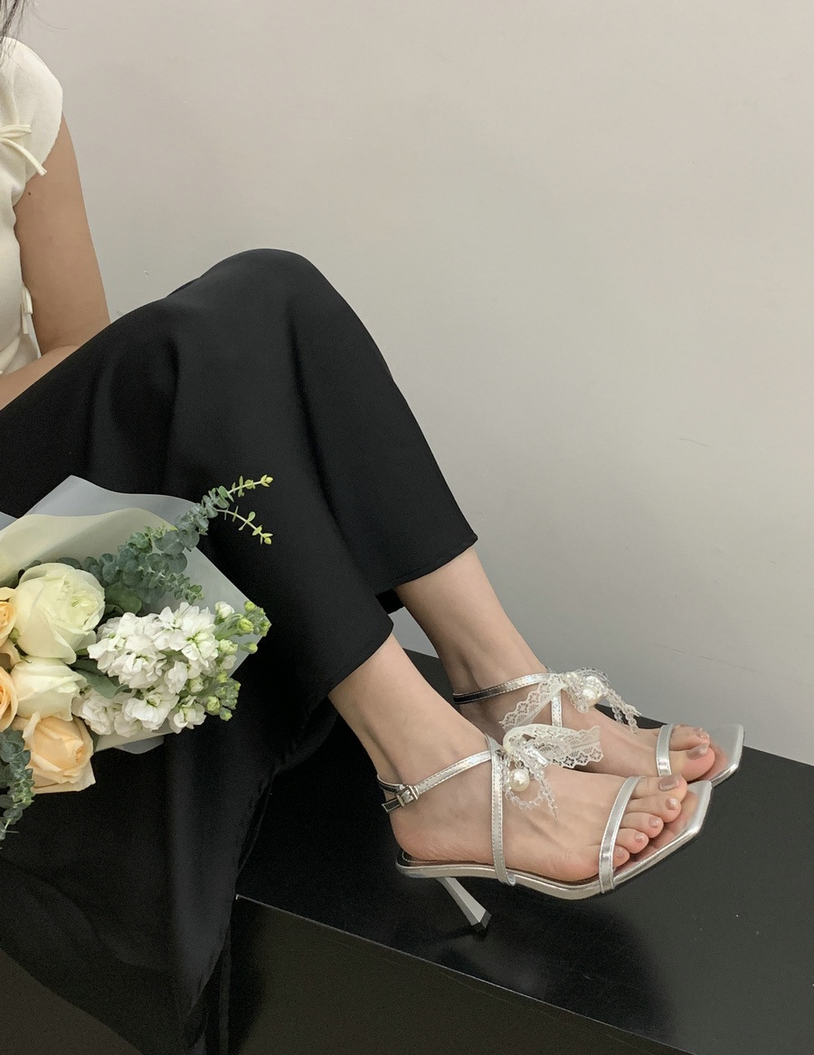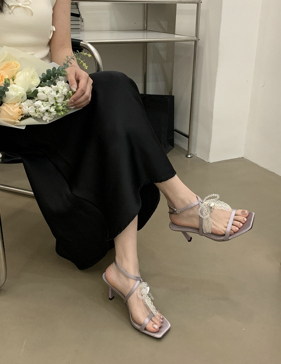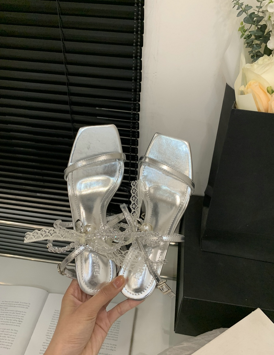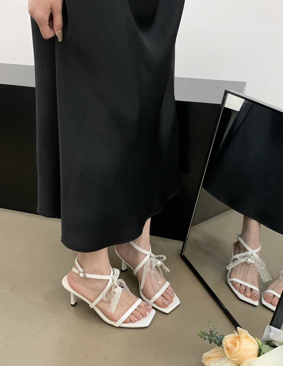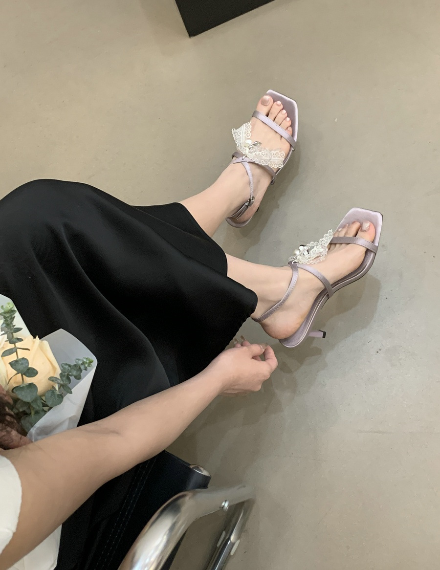 2025 봄과 여름 새로운 스타일의 라인스톤 크로스 스트랩 샌들 스퀘어 토 섹시한 스틸레토 오픈 토 여성 신발스토어 가기