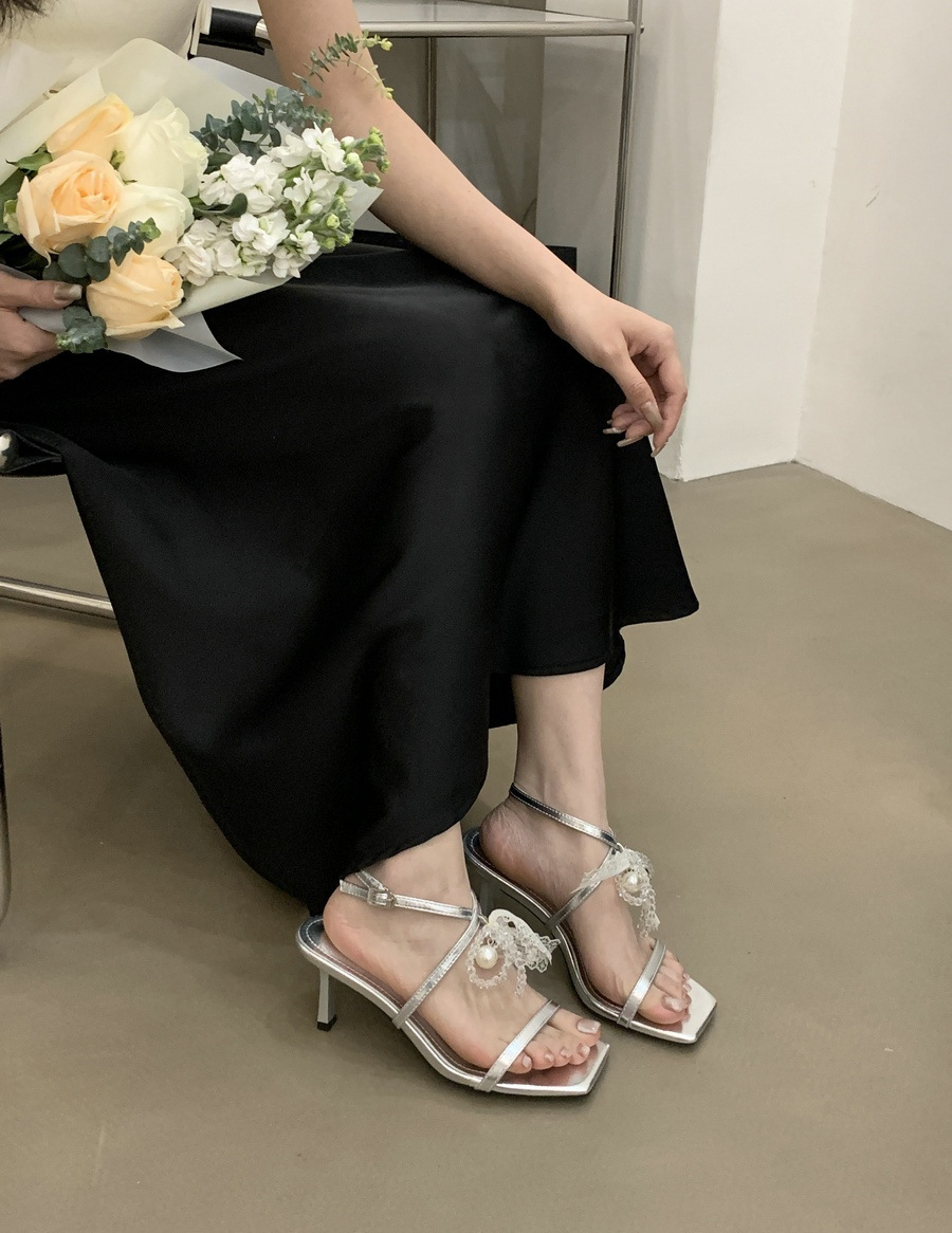 2025 봄과 여름 새로운 스타일의 라인스톤 크로스 스트랩 샌들 스퀘어 토 섹시한 스틸레토 오픈 토 여성 신발