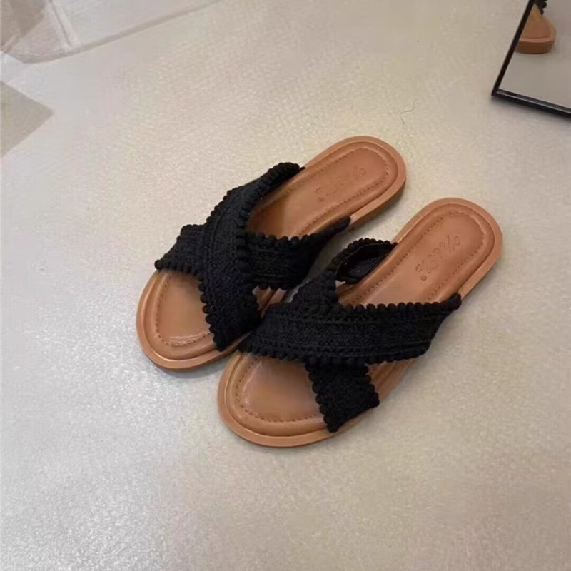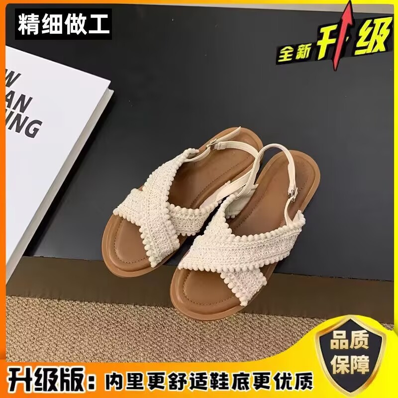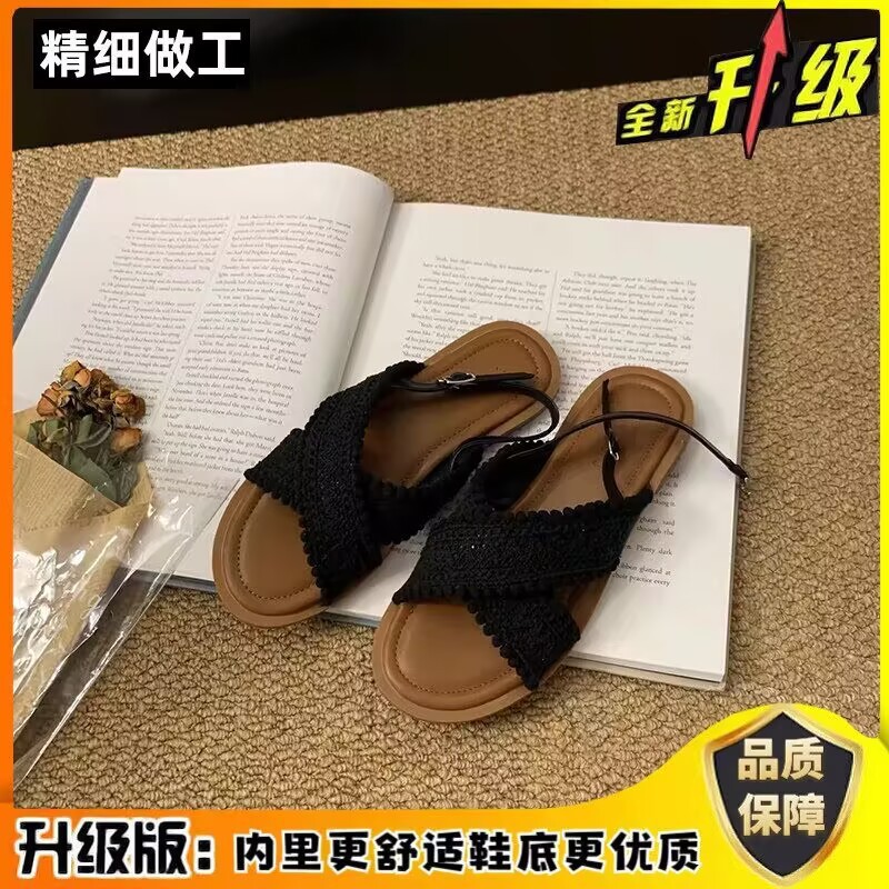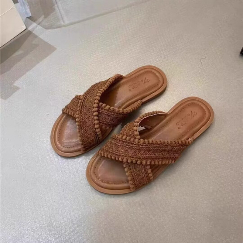 Jinyulu 세련된 부드러운 스타일 샌들 여성 여름 보헤미안 민족 스타일 다목적 플랫 비치 신발 로마 신발
