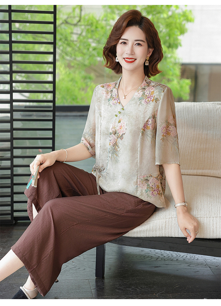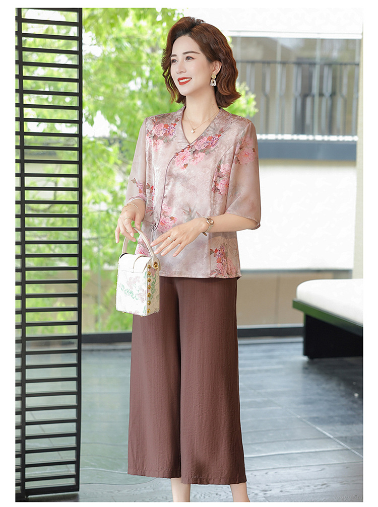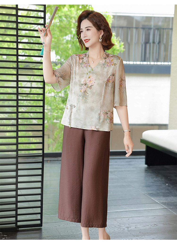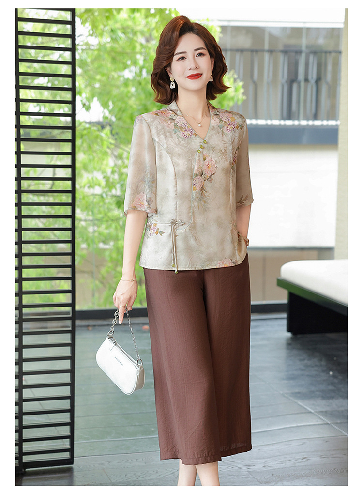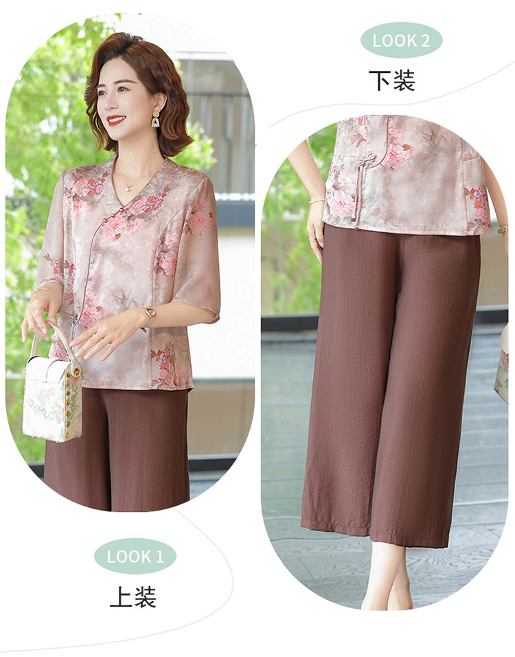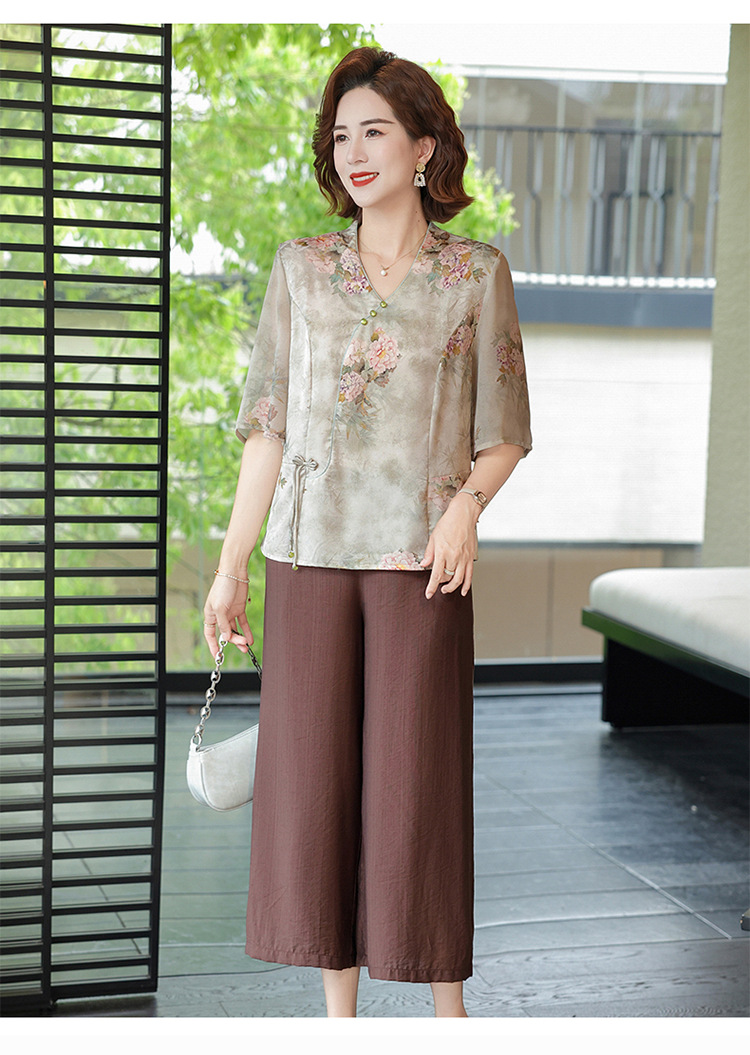 2025 년 여름 짧은 시대 감소 서양식 허리-닫힌 반팔 셔츠 느슨한 슬림 자른 넓은 다리 바지 투피스 바지스토어 가기