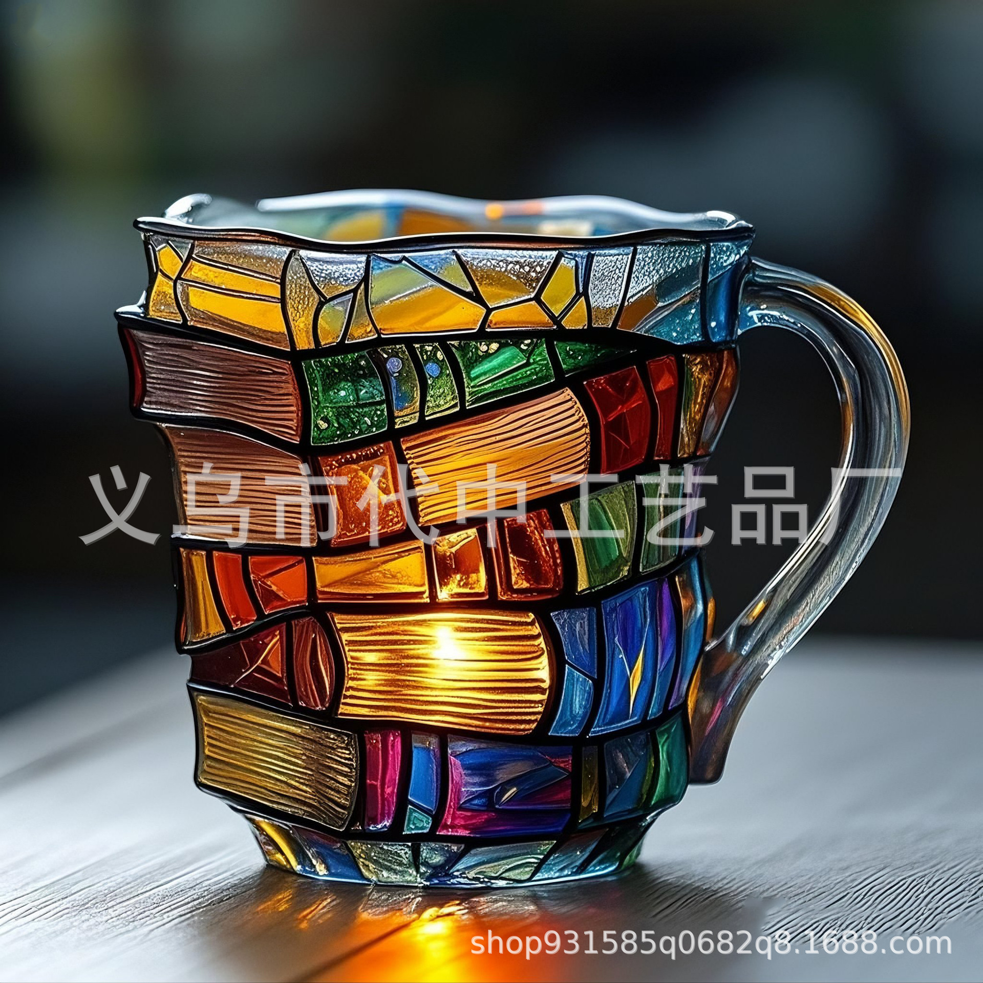 그림 책 머그잔 그림 책 찻잔 3D 그린 책 커피 잔 독특한 책 쌓기 유리 카페