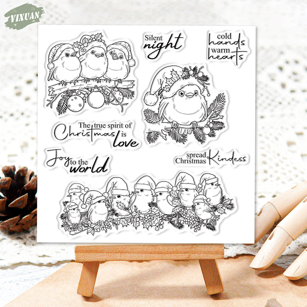 수제 종이 예술 창조적 인 핸드북 장식 실리콘 스탬프 엠보싱 칼 금형 크리스마스 새 투명 스탬프 국경 간 배송스토어 가기
