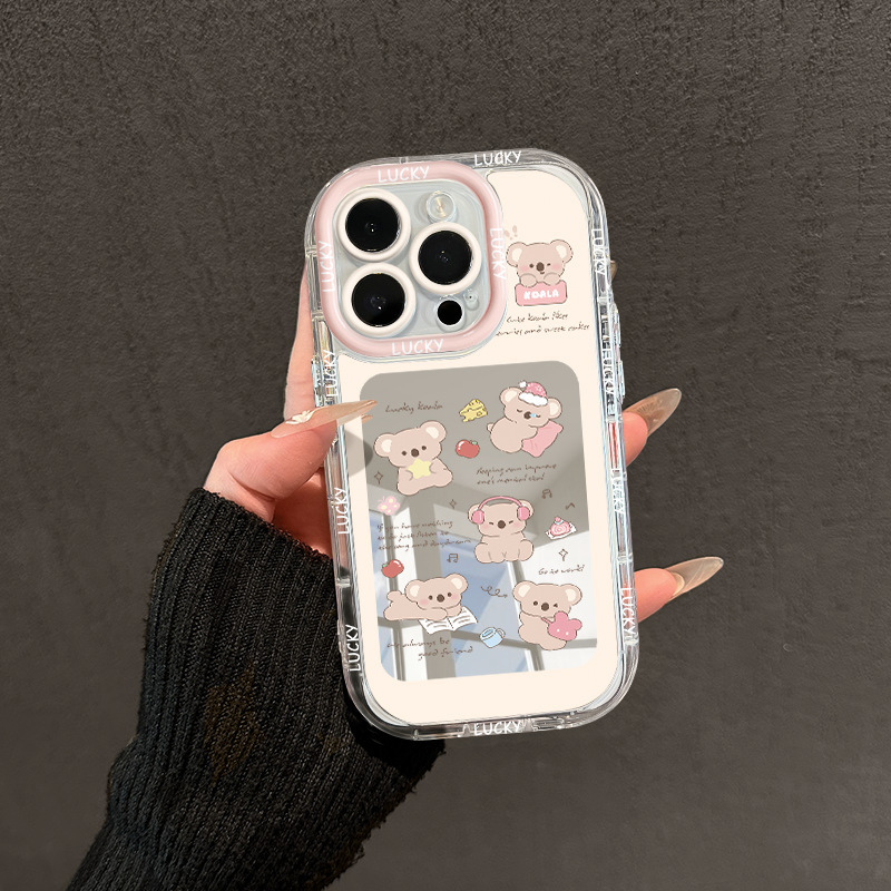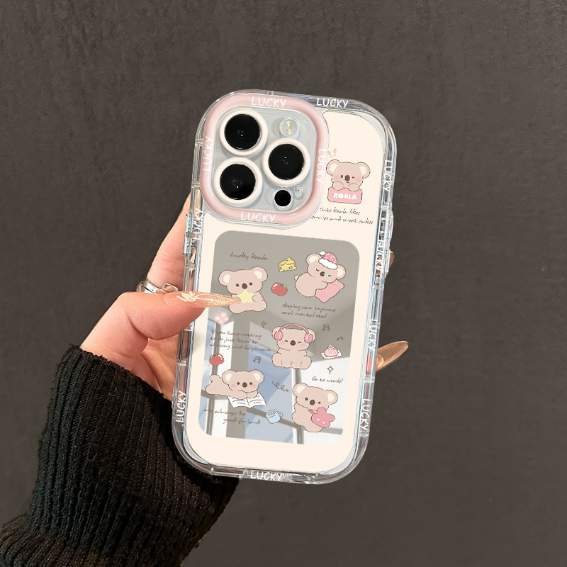 아이폰 16 프로 맥스 크림 폰 쉘 유화 애플 15 만화 14 창작을위한 코알라 놀이
