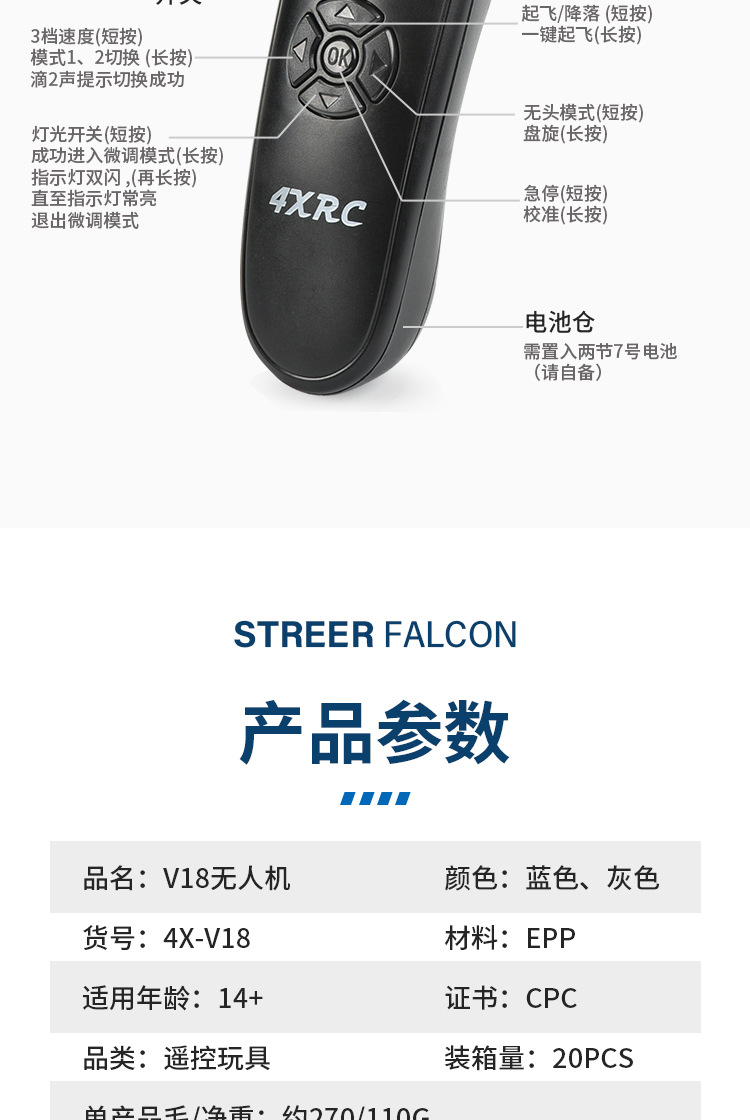 국경 간 원격 제어 항공기 V18 전투기 모델 글라이더 폼 드론 어린이 초등학교 장난감 도매