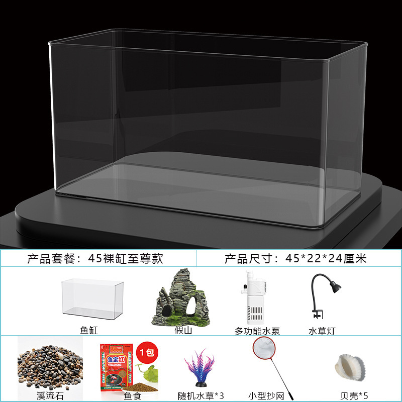 뚜껑이 있는 어항 투명 아크릴 모조 유리 상자 금붕어 탱크 일반 초백색 조경 데스크탑 탱크 사무실 어항