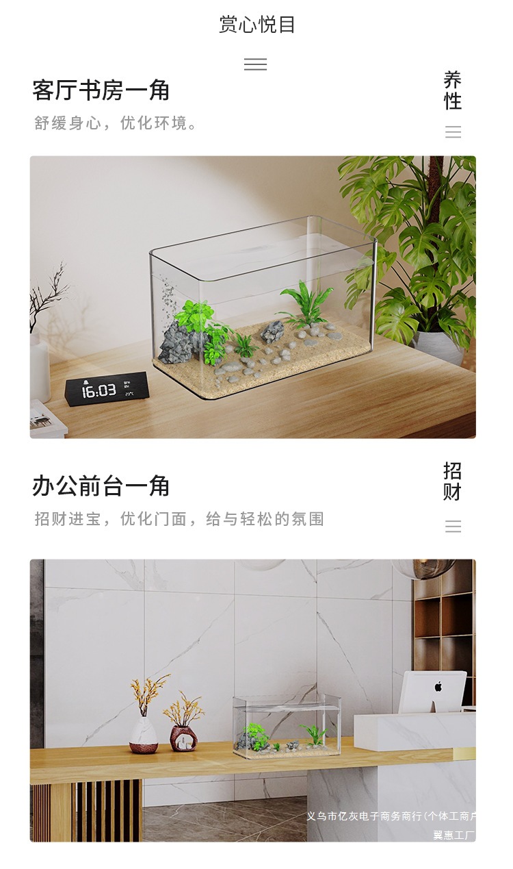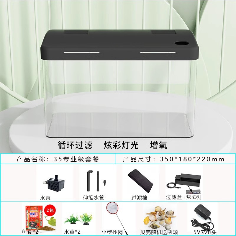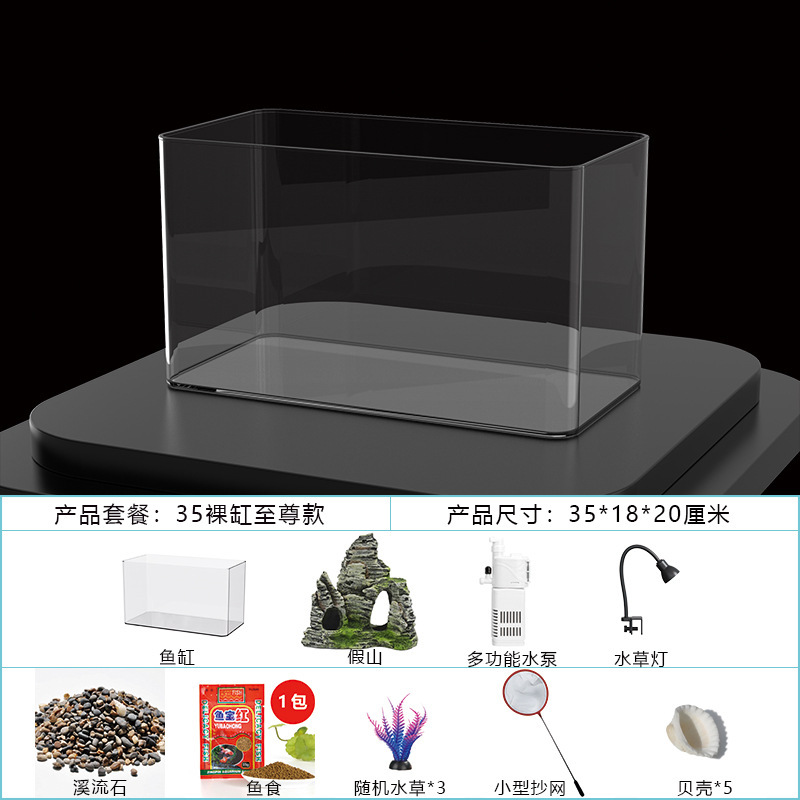 뚜껑이 있는 어항 투명 아크릴 모조 유리 상자 금붕어 탱크 일반 초백색 조경 데스크탑 탱크 사무실 어항스토어 가기