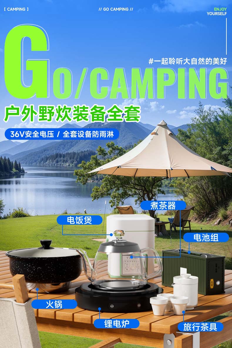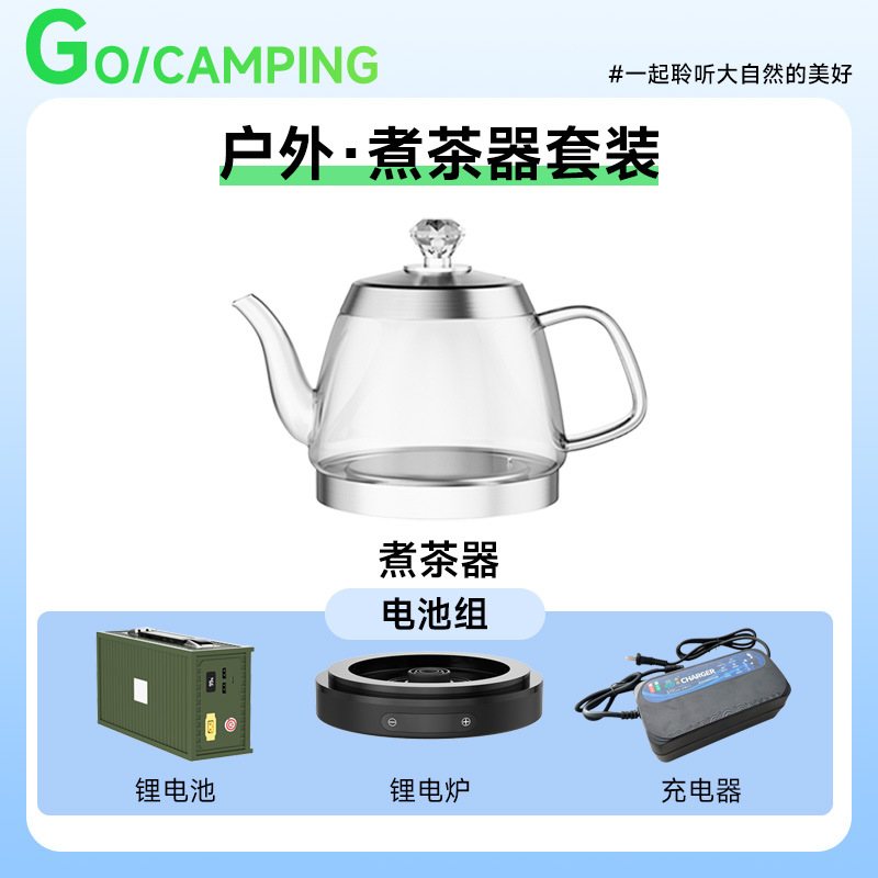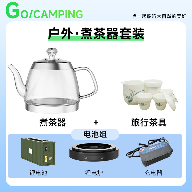 • 주전자 + 리튬 전기 스토브 + 배터리 + 충전기 + 여행용 차 세트