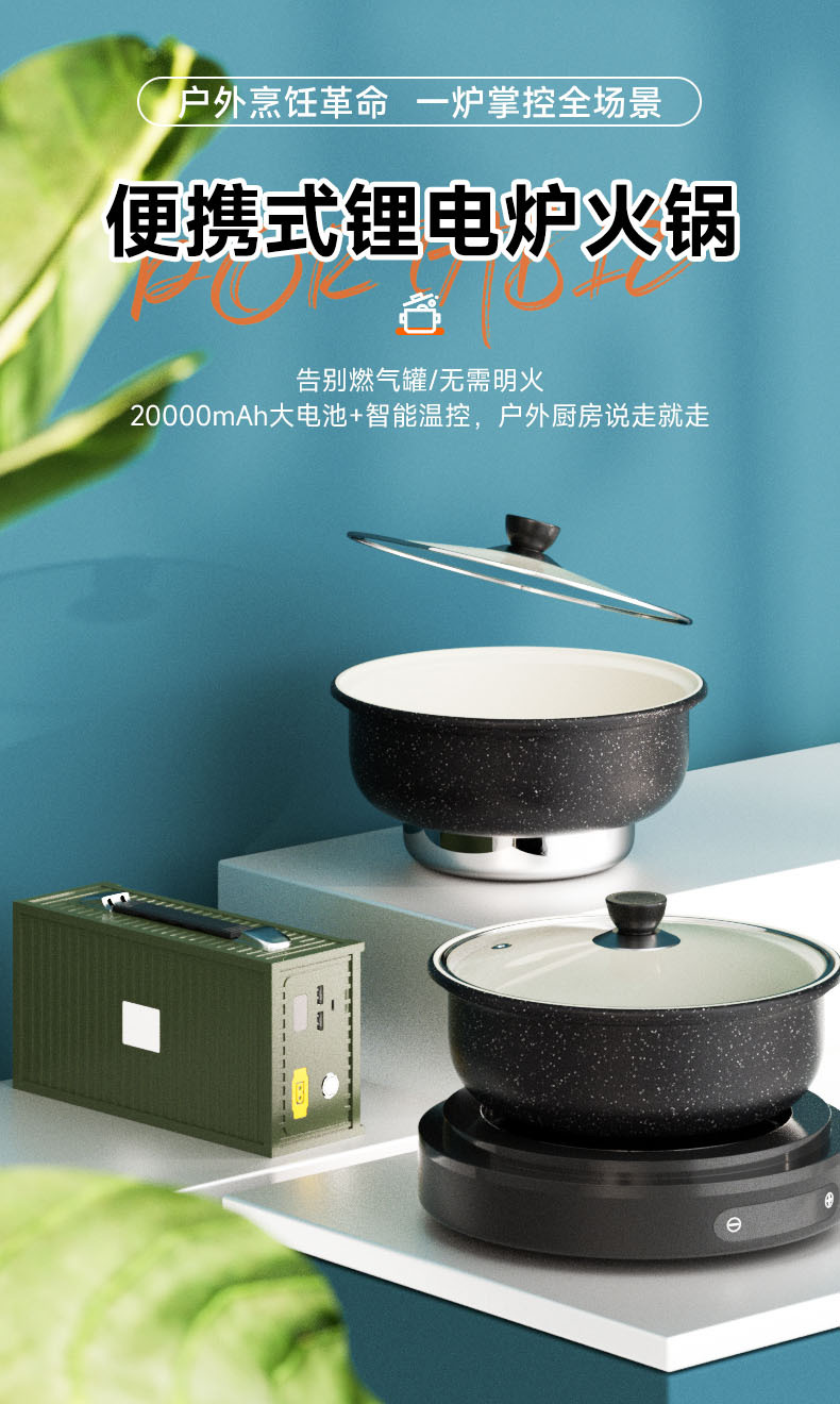 • 냄비 + 리튬 전기 스토브 + 배터리 + 충전기
