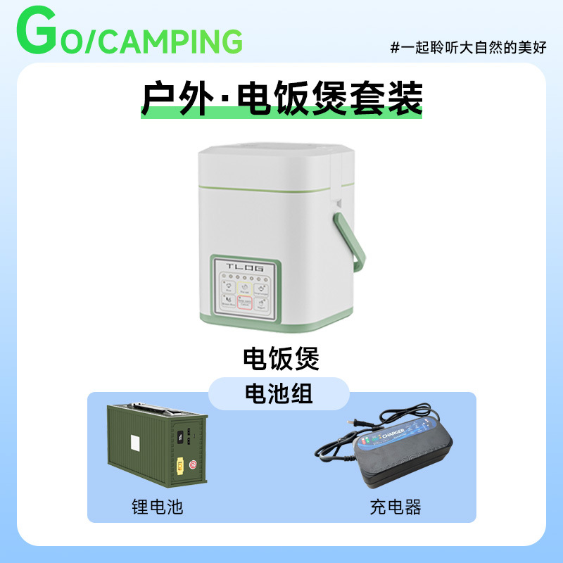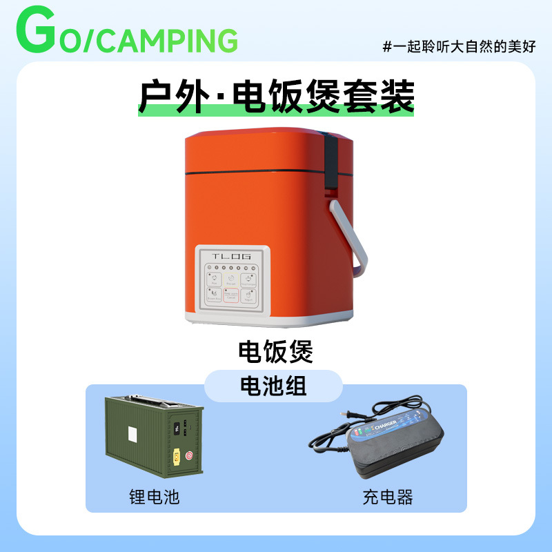 • 주전자 + 냄비 + 밥솥 + 리튬 전기 스토브 + 배터리 + 충전기 + 여행용 차 세트 (무료 천 가방)