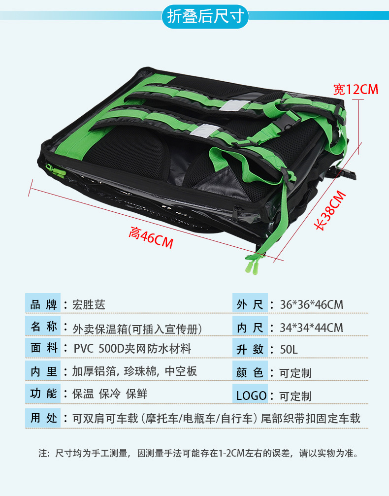 국경 간 우버 테이크 아웃 인큐베이터 500D 클립 그물 방수 테이크 아웃 박스 더블 숄더 라이더 자동차 배달 심부름