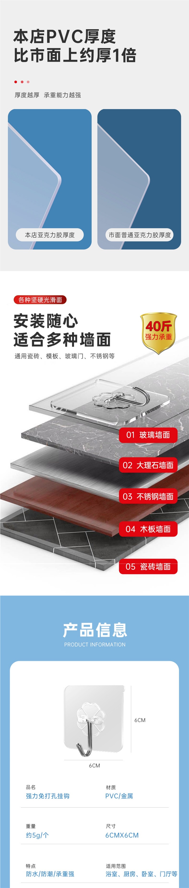 • 특대형 모델-투명 대형 후크 [5개 팩]